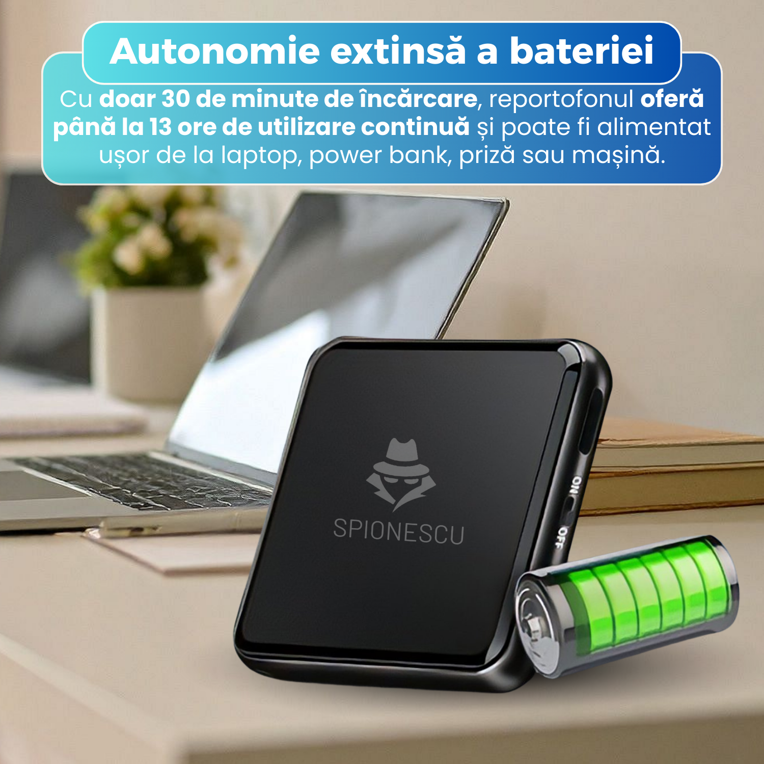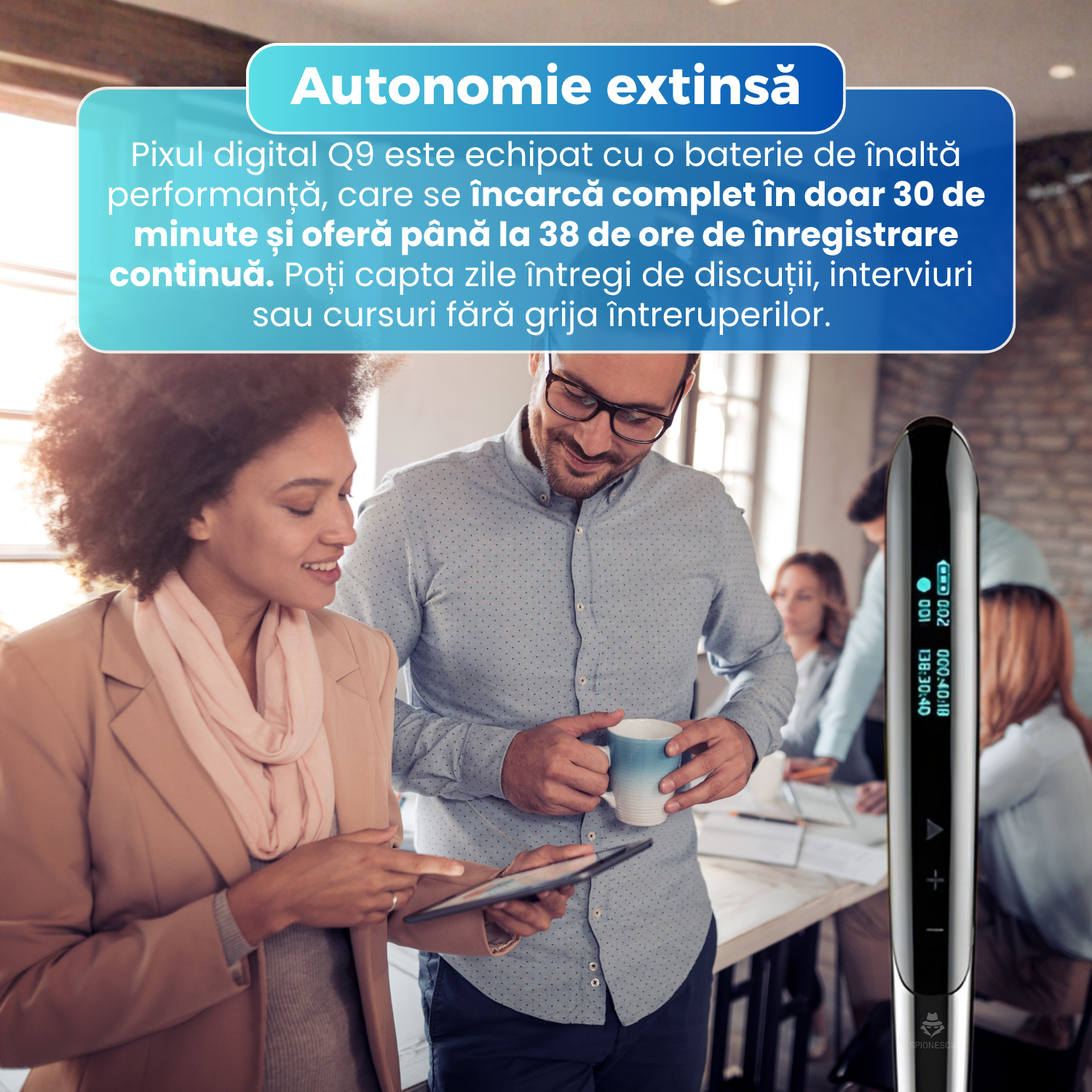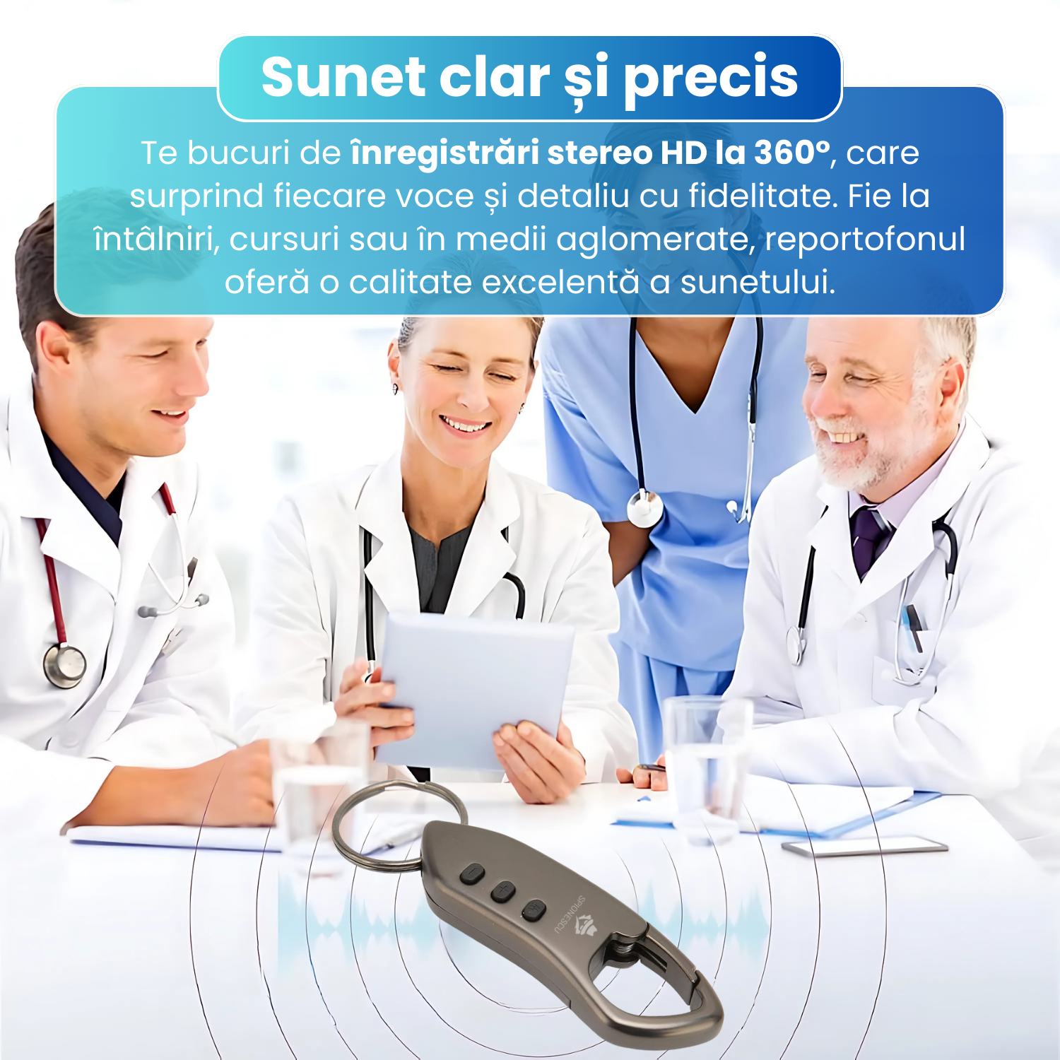 Produsul este foarte bun, compact și elegant. Eu îl țin ca breloc și îl utilizez în special pentru înregistrarea cursurilor de la școală. Se activează când detectează un sunet, claritatea sunetului este buna, autonomia bateriei este ok. Recomand!
