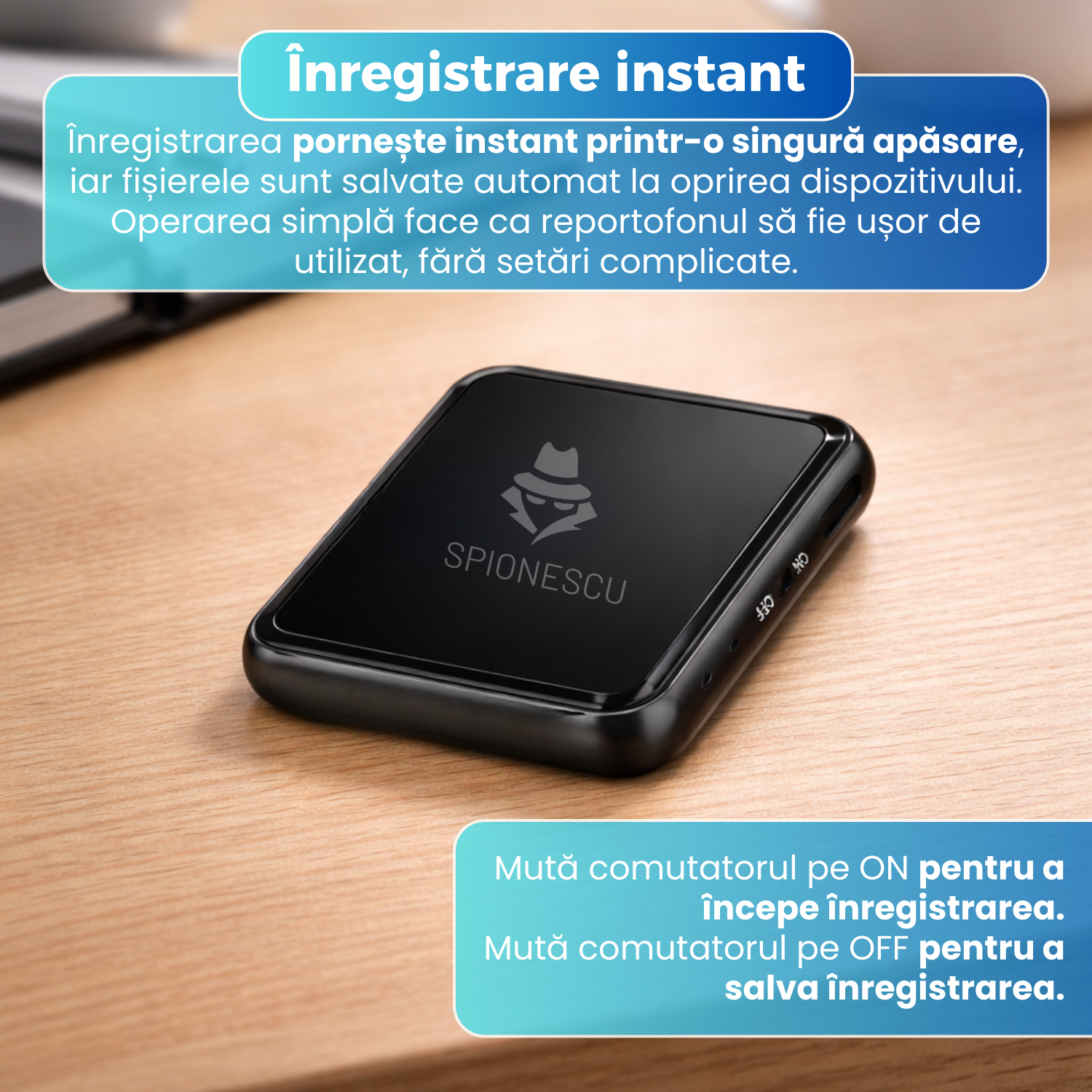 L-am bagat in portofel, incape perfect si capteaza tot din jurul lui, eu am avut o discutie in masina cu fostul meu sot, si fara sa isi dea seama a marturisit tot. Este usor de folosit si are si instructiuni in limba romana
