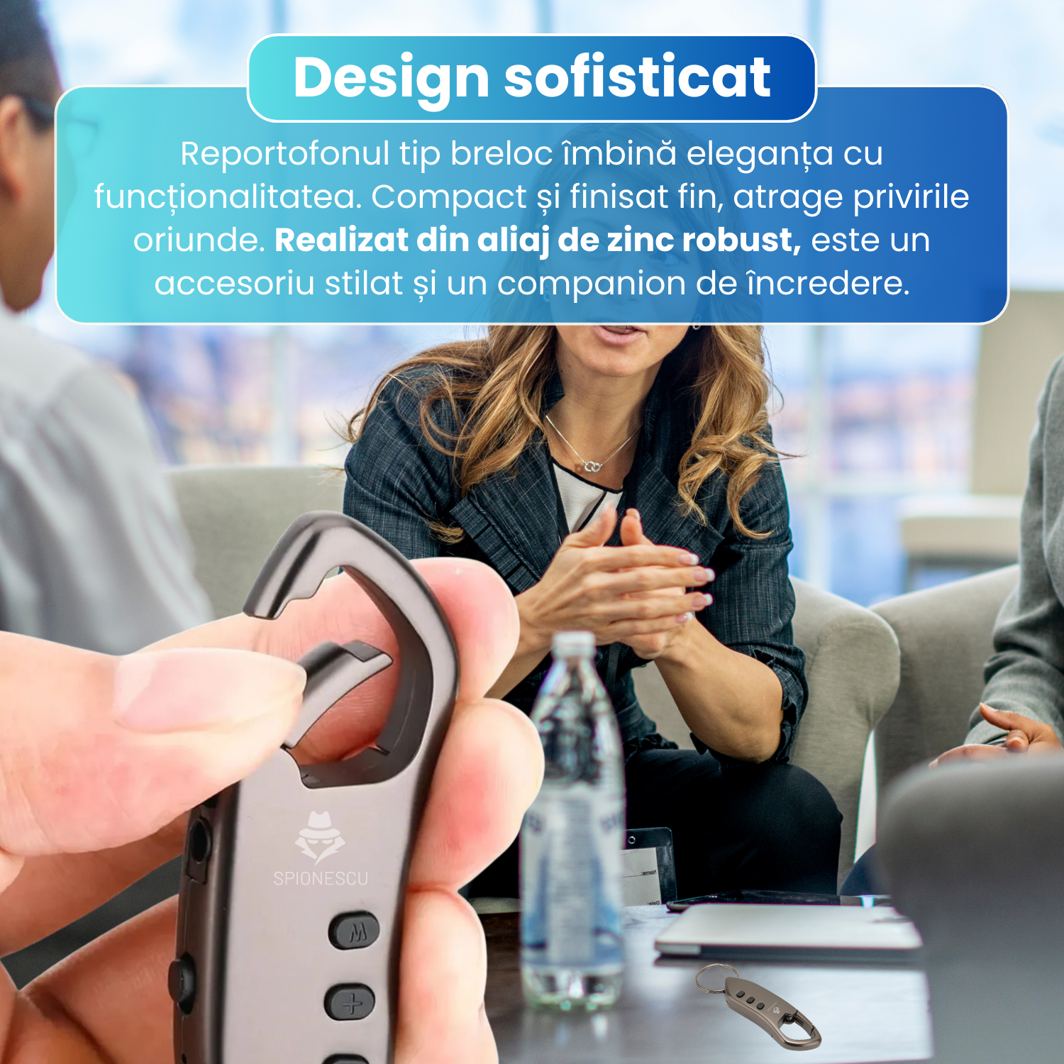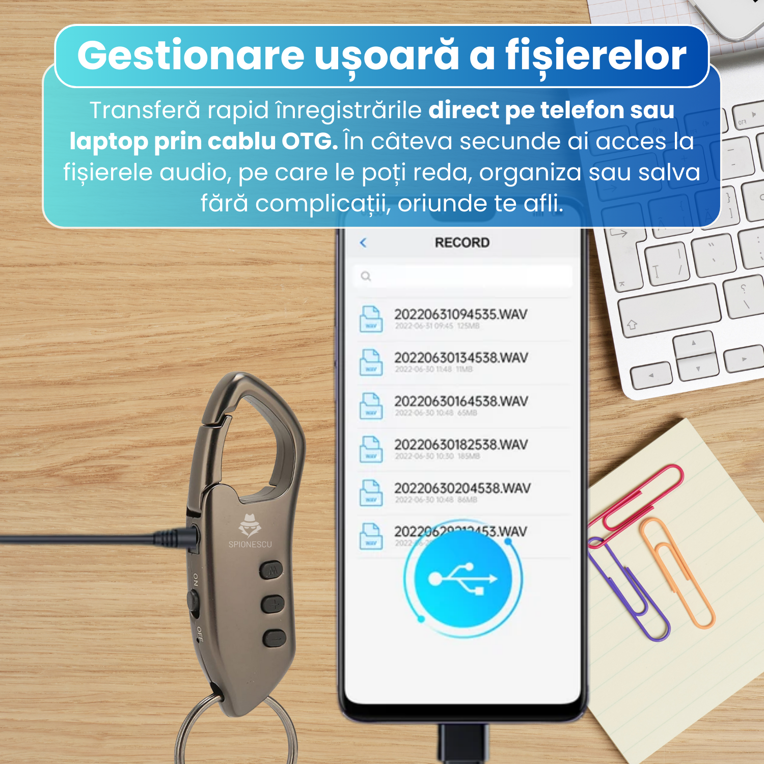Mini reportofon tip breloc SK005, memorie 8GB/16GB/32GB, acoperire 12 m, baterie 80 mAh, standby pana la 30 zile, , MP3 player, activare vocala