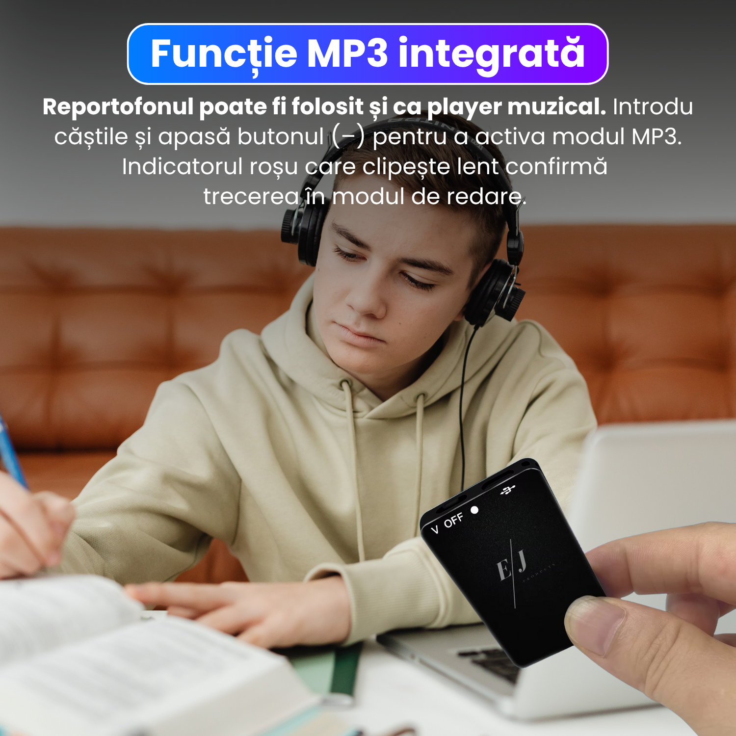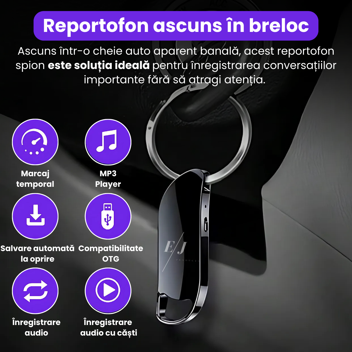 Mini reportofon cu microfon ascuns, activare vocala, MP3 Player, S26