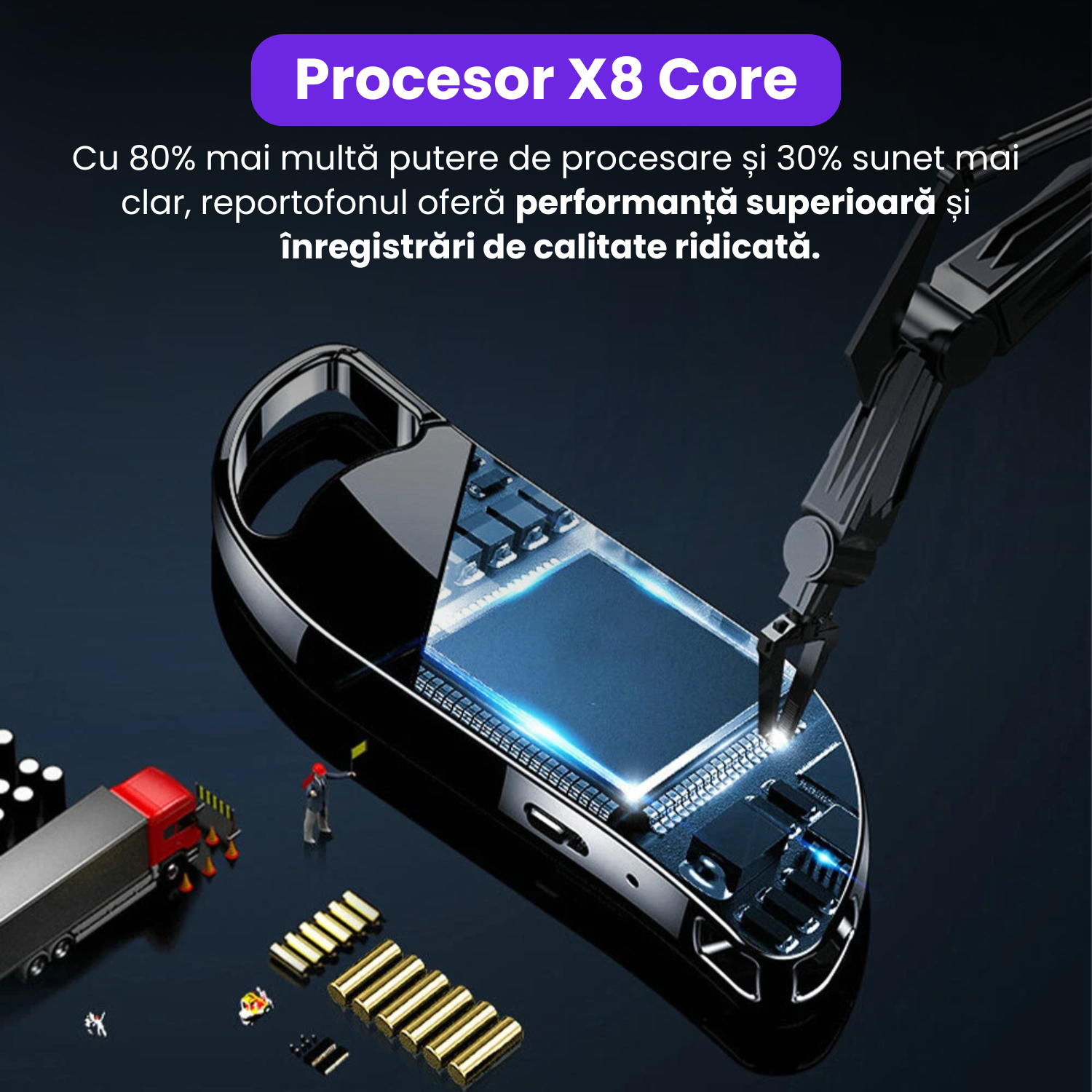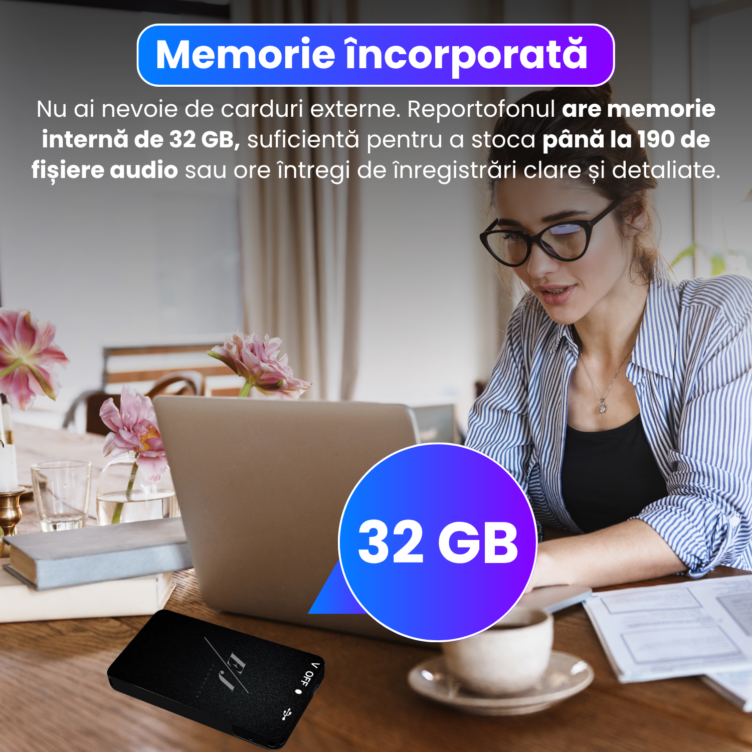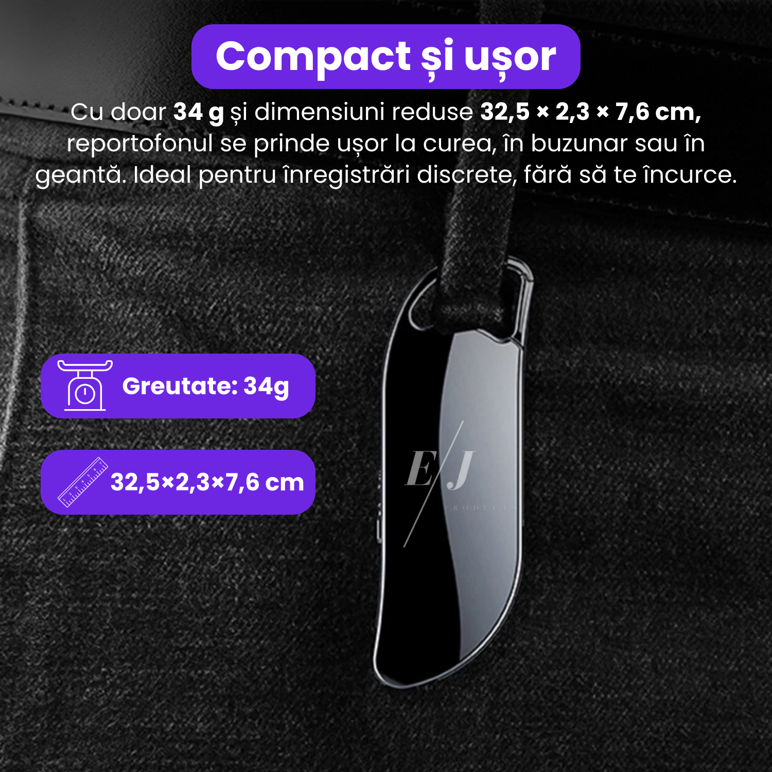 Mini reportofon cu microfon ascuns, activare vocala, MP3 Player, 32GB - L800