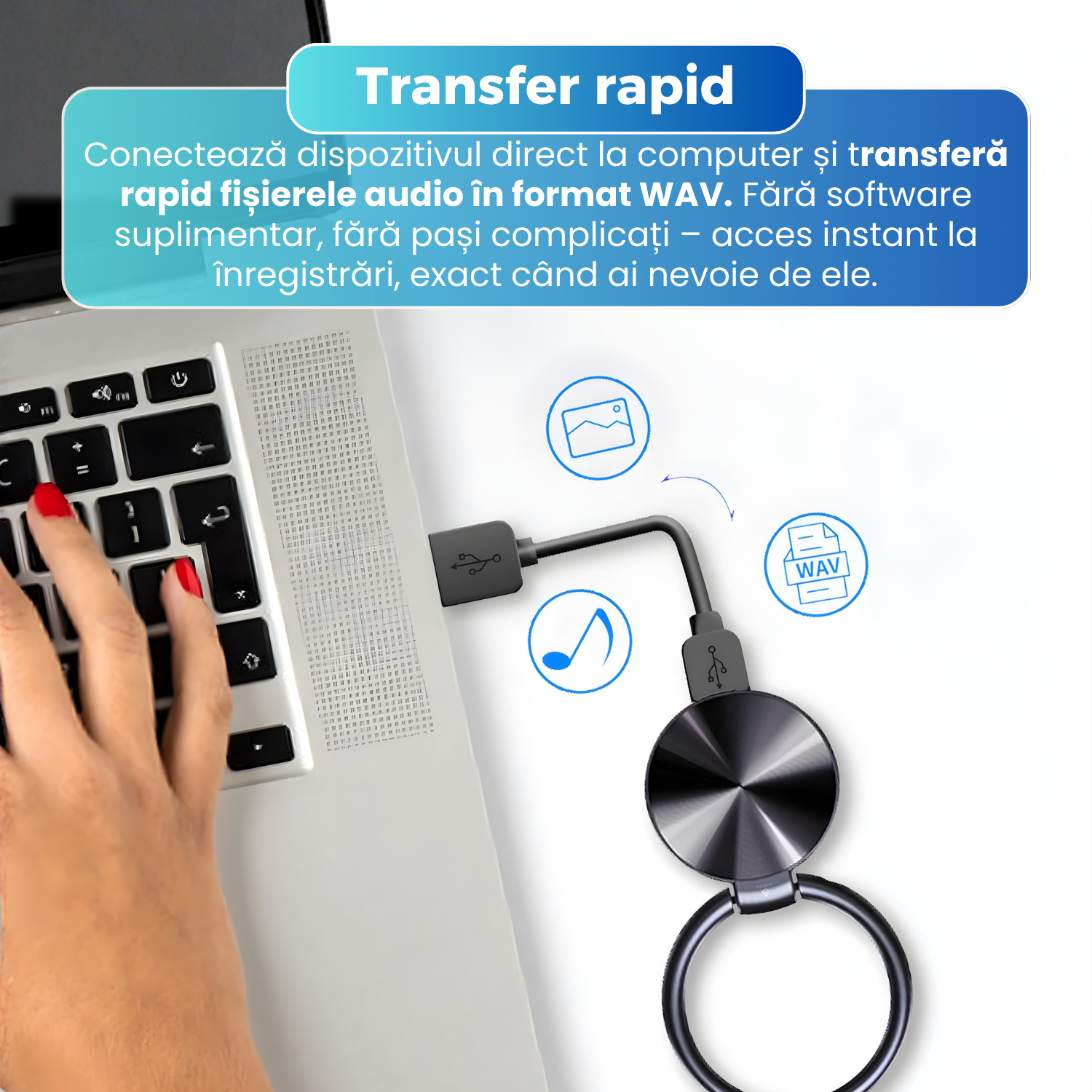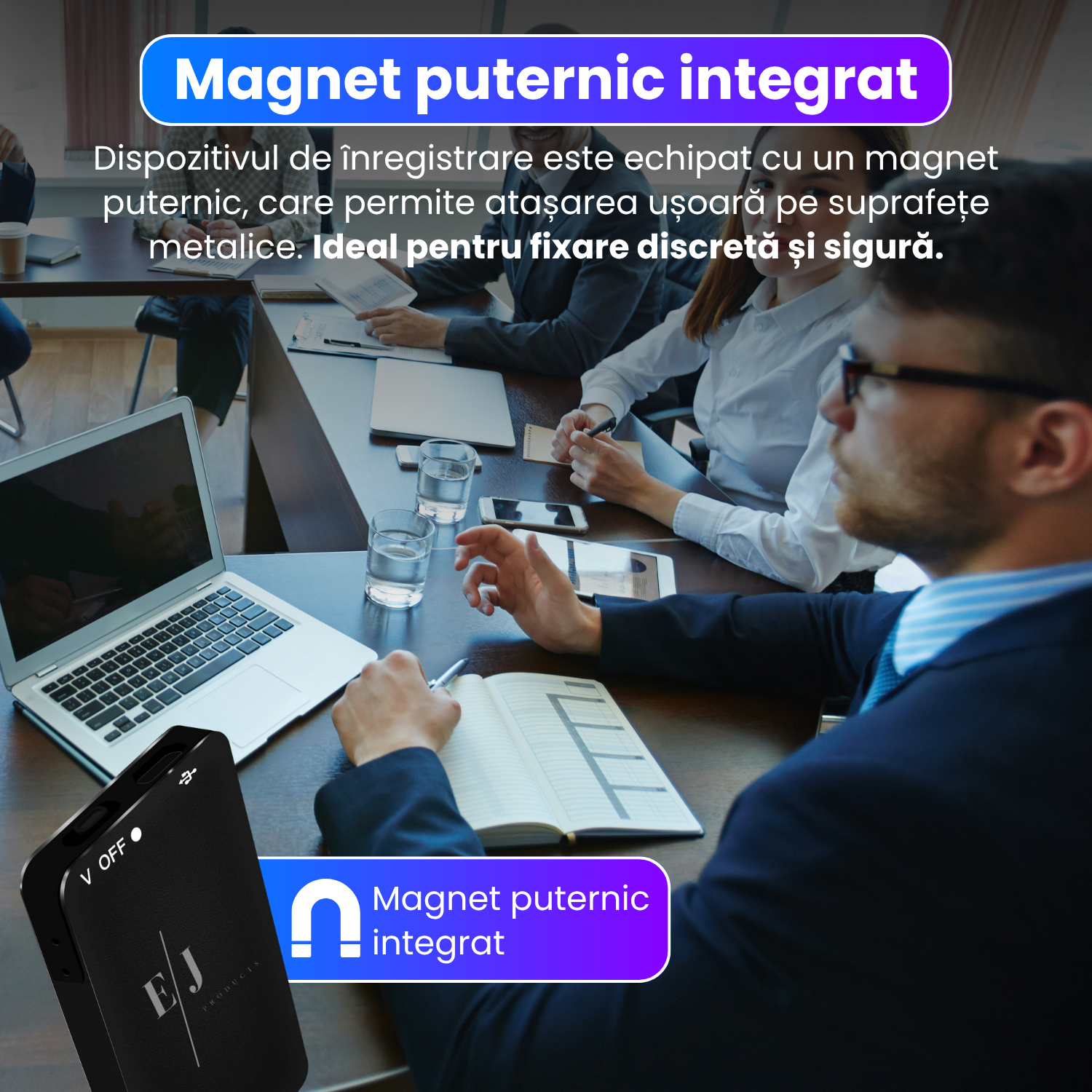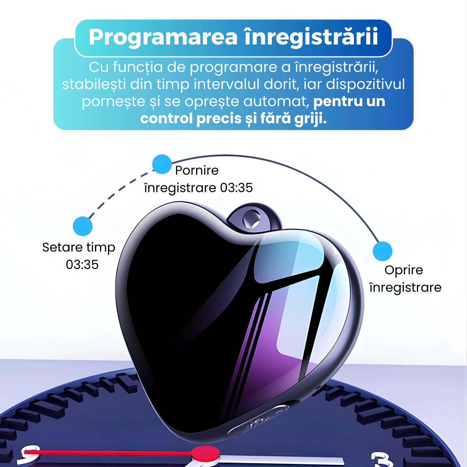 Mini reportofon magnetic cu microfon ascuns, activare vocala, MP3 Player, 16GB - Q-63