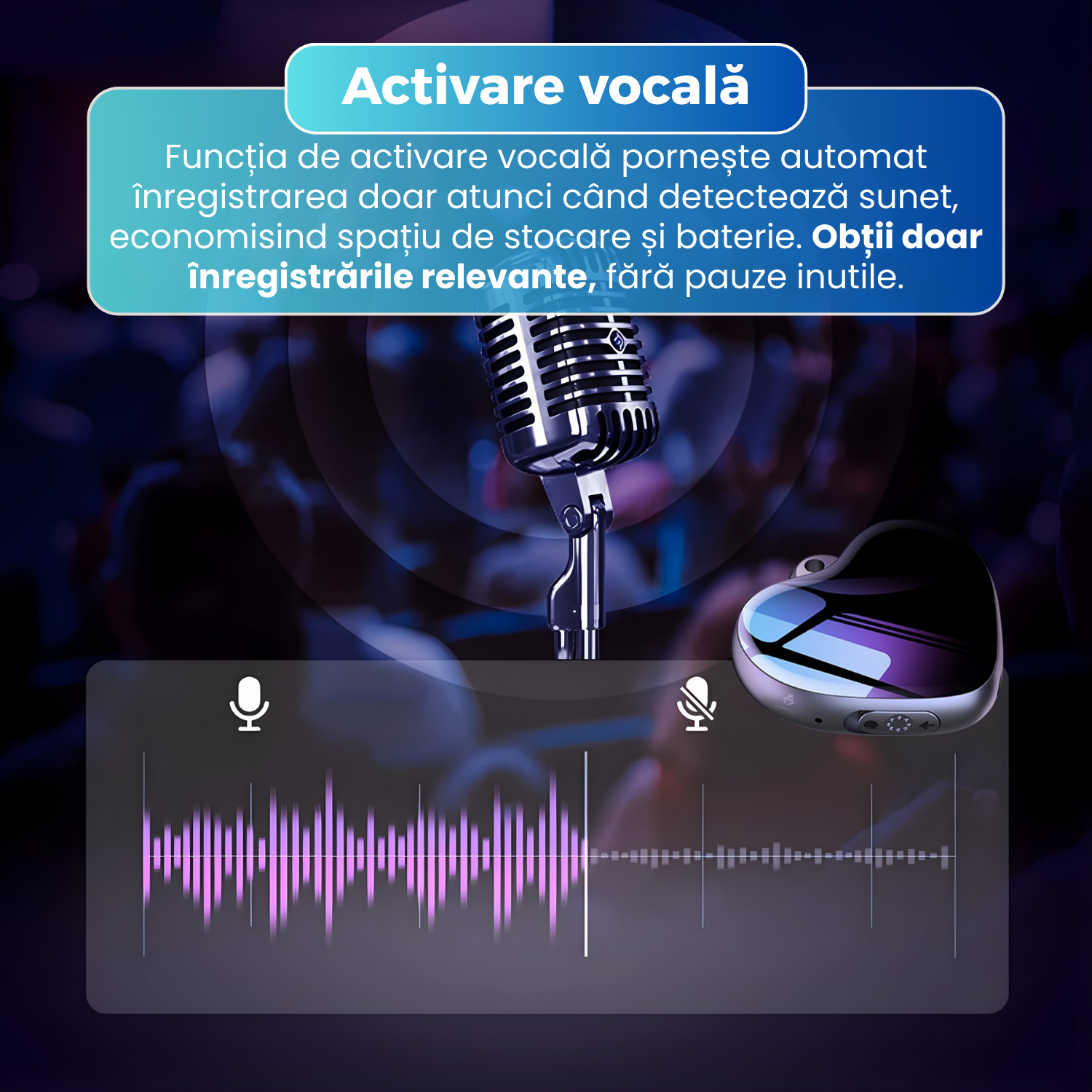 Mini reportofon cu microfon ascuns, activare vocala - S30