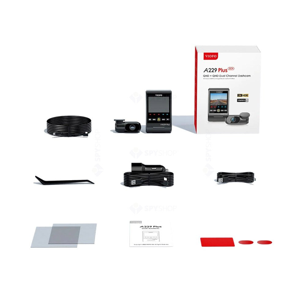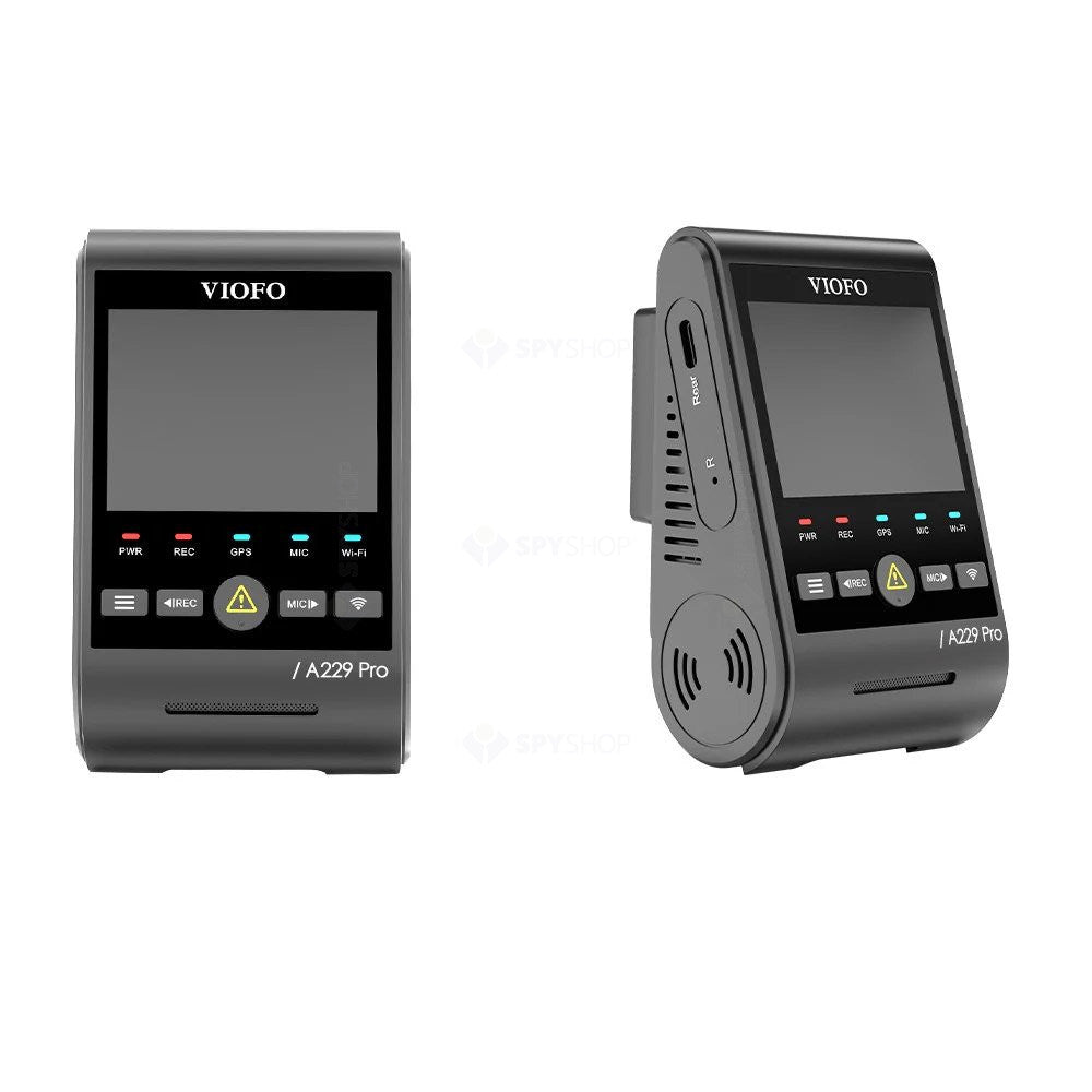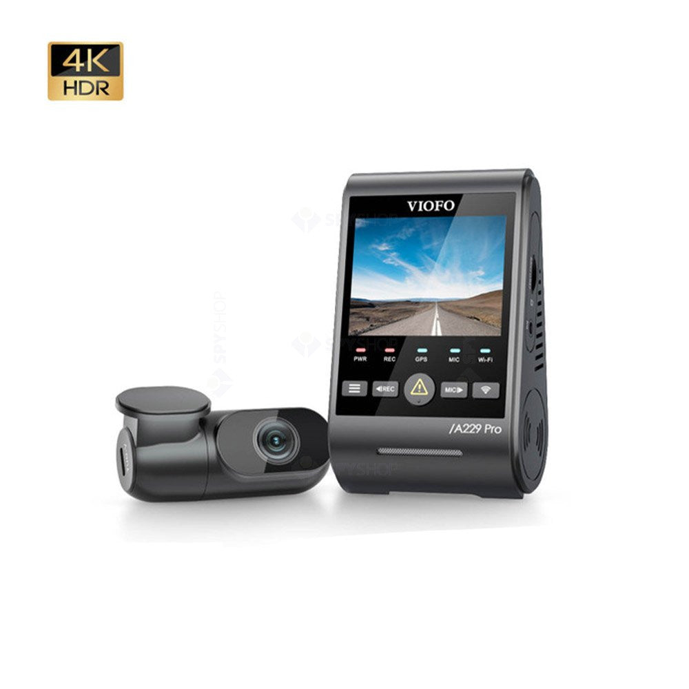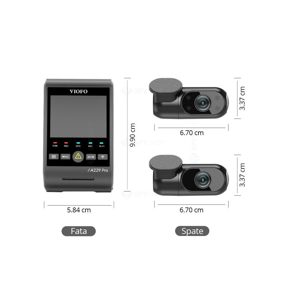 Camera auto DVR fata/spate Viofo A229 PRO GPS, 4K Ultra HD fata/2K Quad HD spate, 8.86 mm, Wi-Fi dual band, GPS Logger, comenzi vocale, slot card