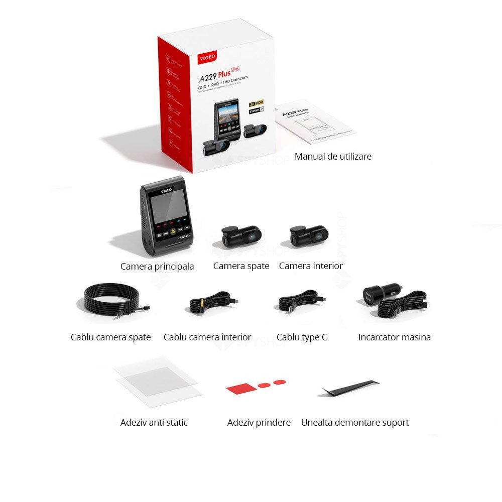 Camera auto WiFi dual band fata/interior Viofo A229 PLUS 2CH-IR, 5MP + 2 MP, 2.4 - 5 GHz, GPS Logger, Night Vision, IR, control vocal, slot card
