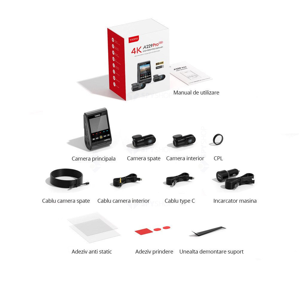 Camera auto tripla Viofo A229 PRO 3CH, 4K/2K/Full HD, WiFi, GPS Logger, microfon, slot card, super night vision 2.0