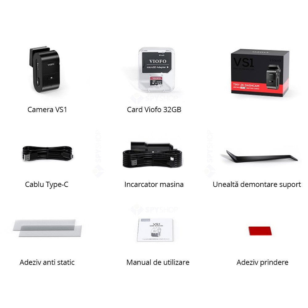 Camera auto VS1 Viofo, 2K, WiFi, GPS Logger, microfon, slot card, control vocal, super night vision 2.0, card microSD 32GB inclus