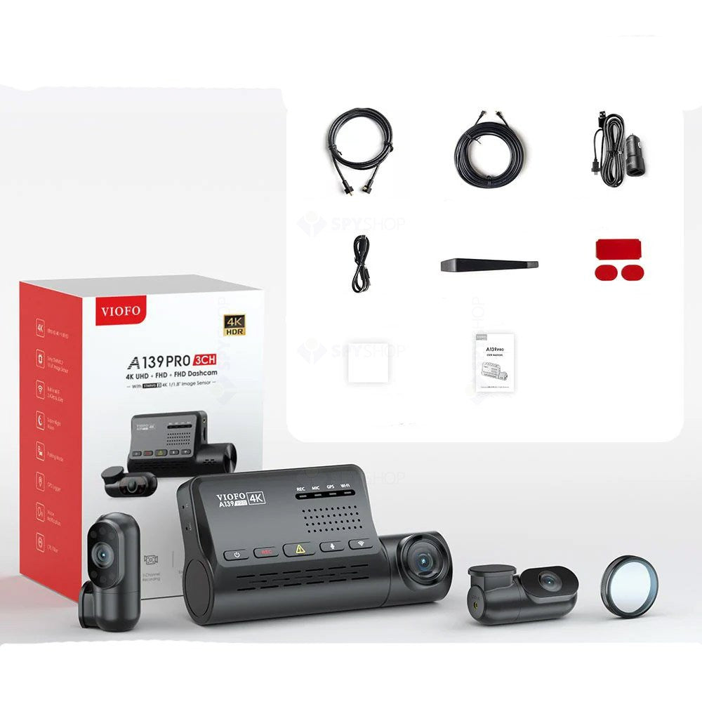 Camera auto WiFi fata/spate/interior Viofo A139 PRO 3CH, 8 MP, 2.4 - 5 GHz, GPS, Night Vision, slot card
