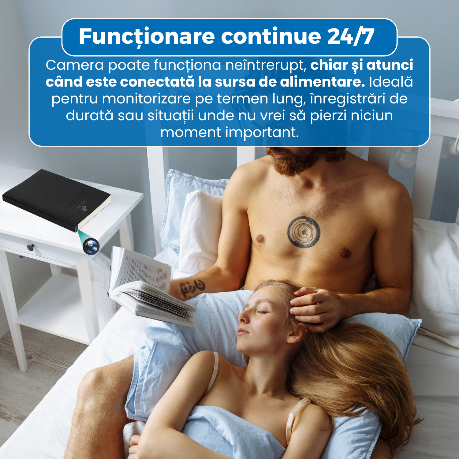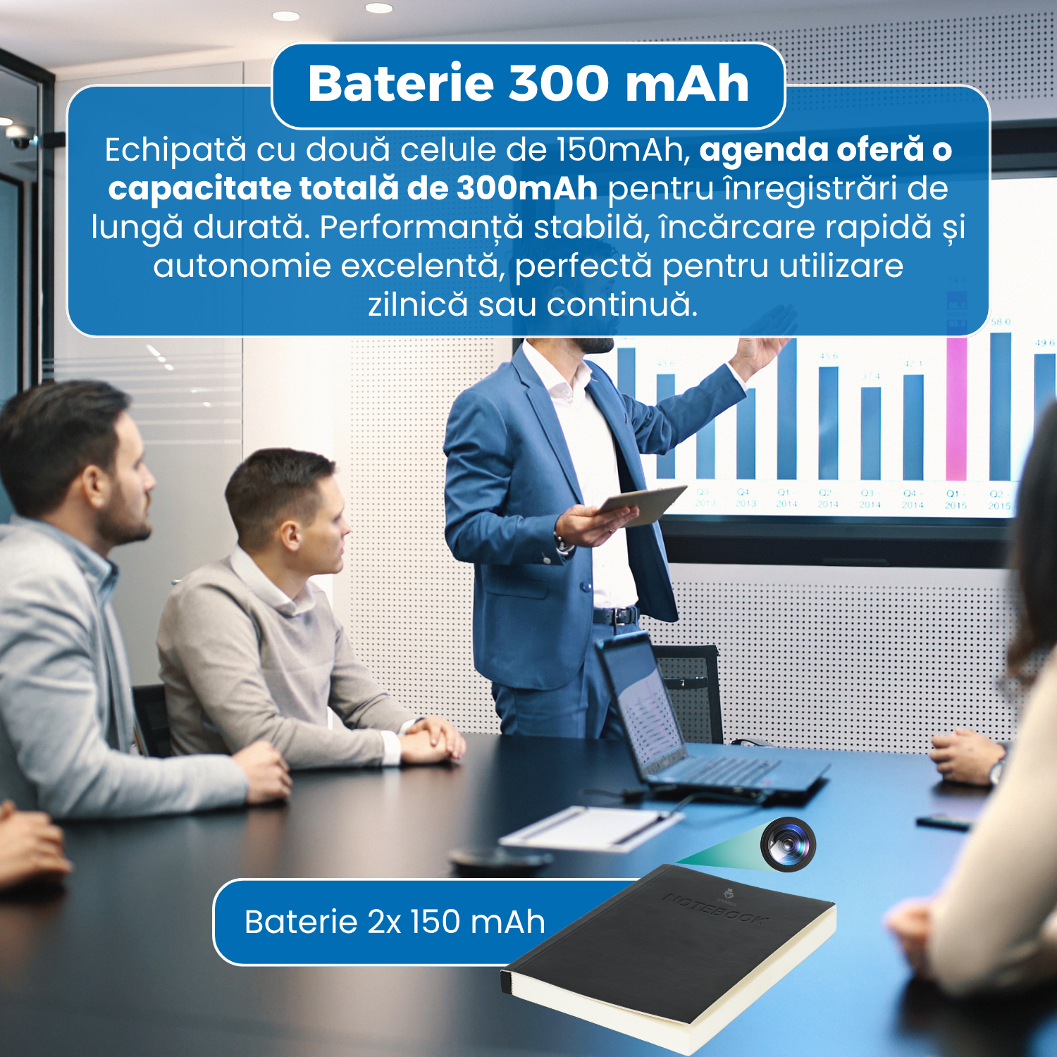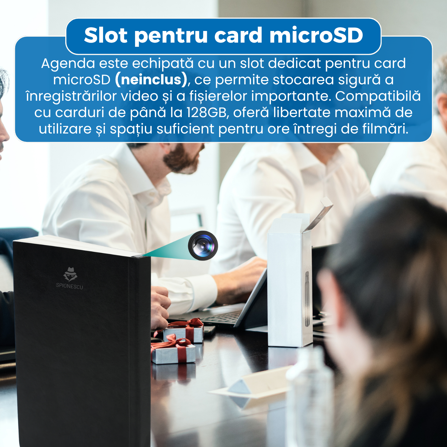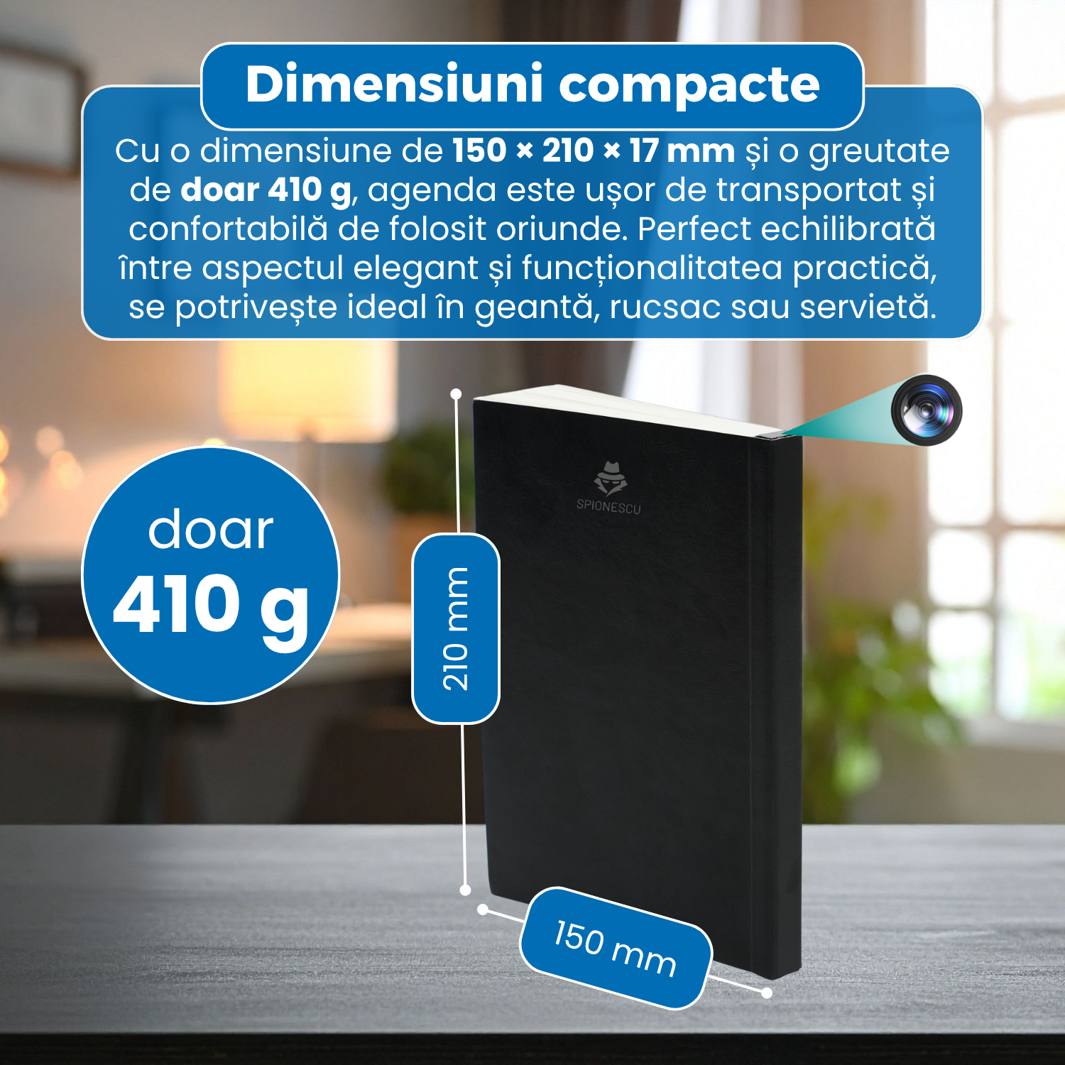Agenda cu camera ascunsa, rezolutie 1080P, inregistrare continua si la detectie miscare, baterie 300mAh, slot microSD, functie de scriere reala, design discre