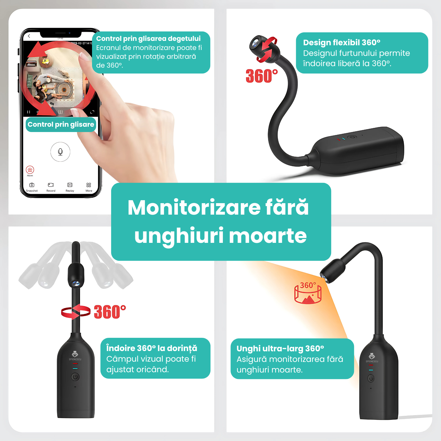 Camera WI-FI flexibila 360°, QJ700, detectare umana, audio bidirectional, stocare in cloud, baterie 2000 mAh, autonomie 5 ore, notificare instantanee