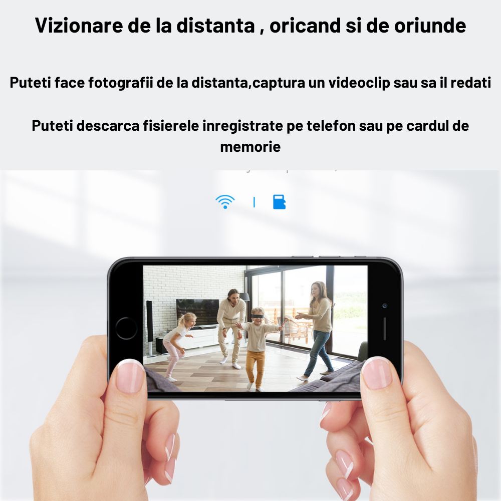Mini camera de supraveghere, WIFI, 1080P, vedere nocturna, unghi larg de 155°, senzor miscare, alarma APP, control distanta, baterie 1150mAh, autonomie 6 ore