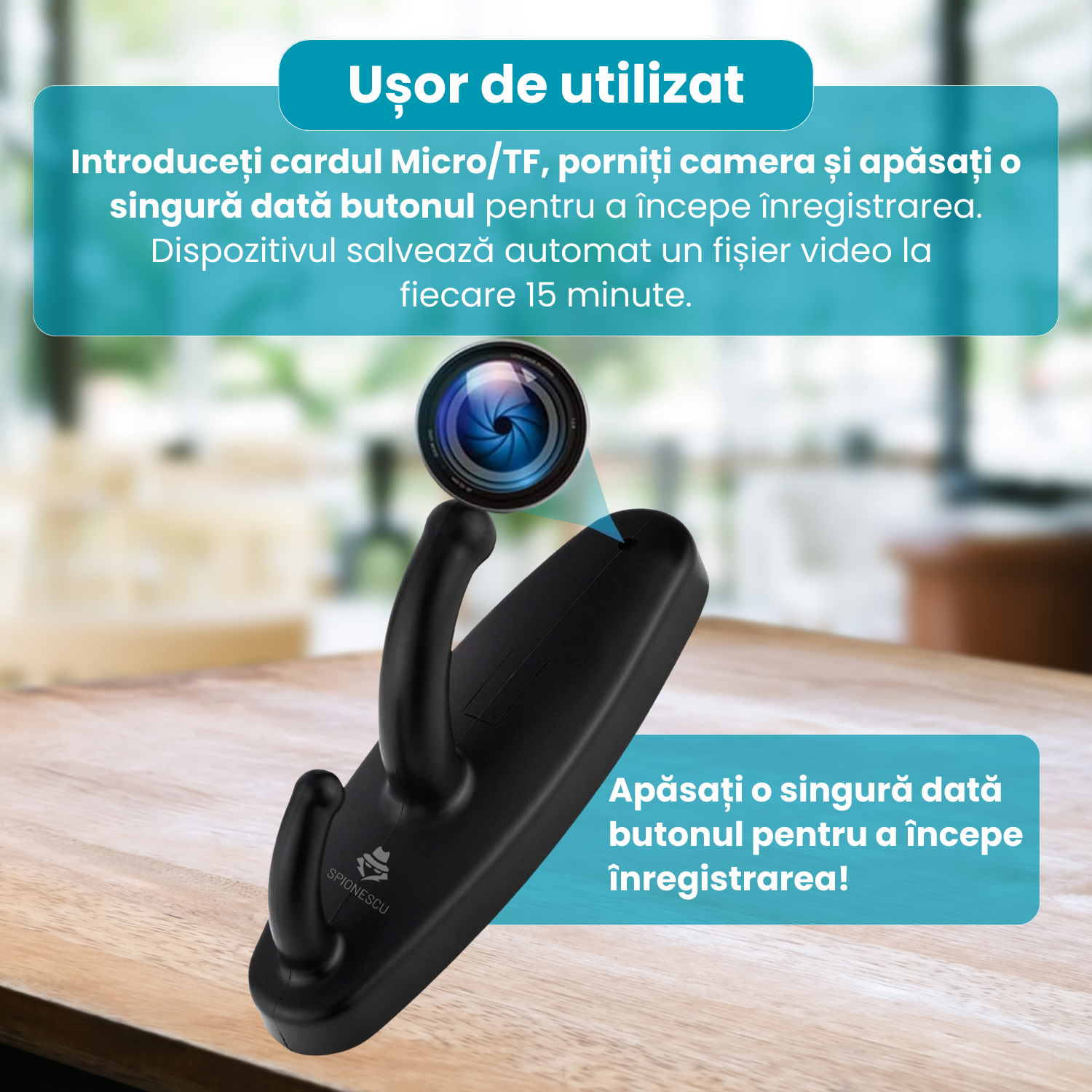 Camera ascunsa in cuier, Full HD 1080P, detectie miscare, inregistrare vocala, dimensiuni compacte, montaj discret