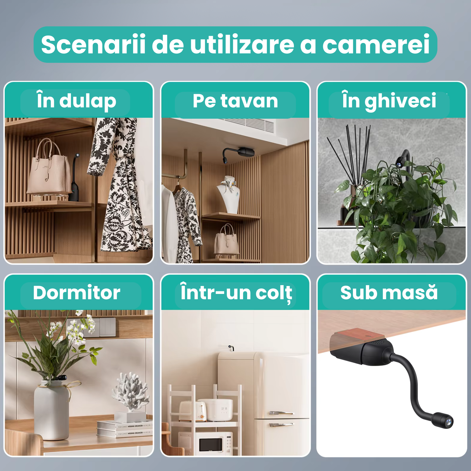 Camera video ascunsa cu microfon WiFi, HD, flexibila 360° si senzor de miscare