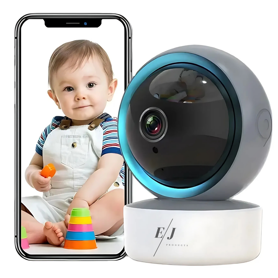 Camera video WiFi pentru bebelusi si copii, supraveghere HD, vedere nocturna, rotatie 355°, senzor de miscare, detectare sunet, control vocal, audio bidirectional, alb