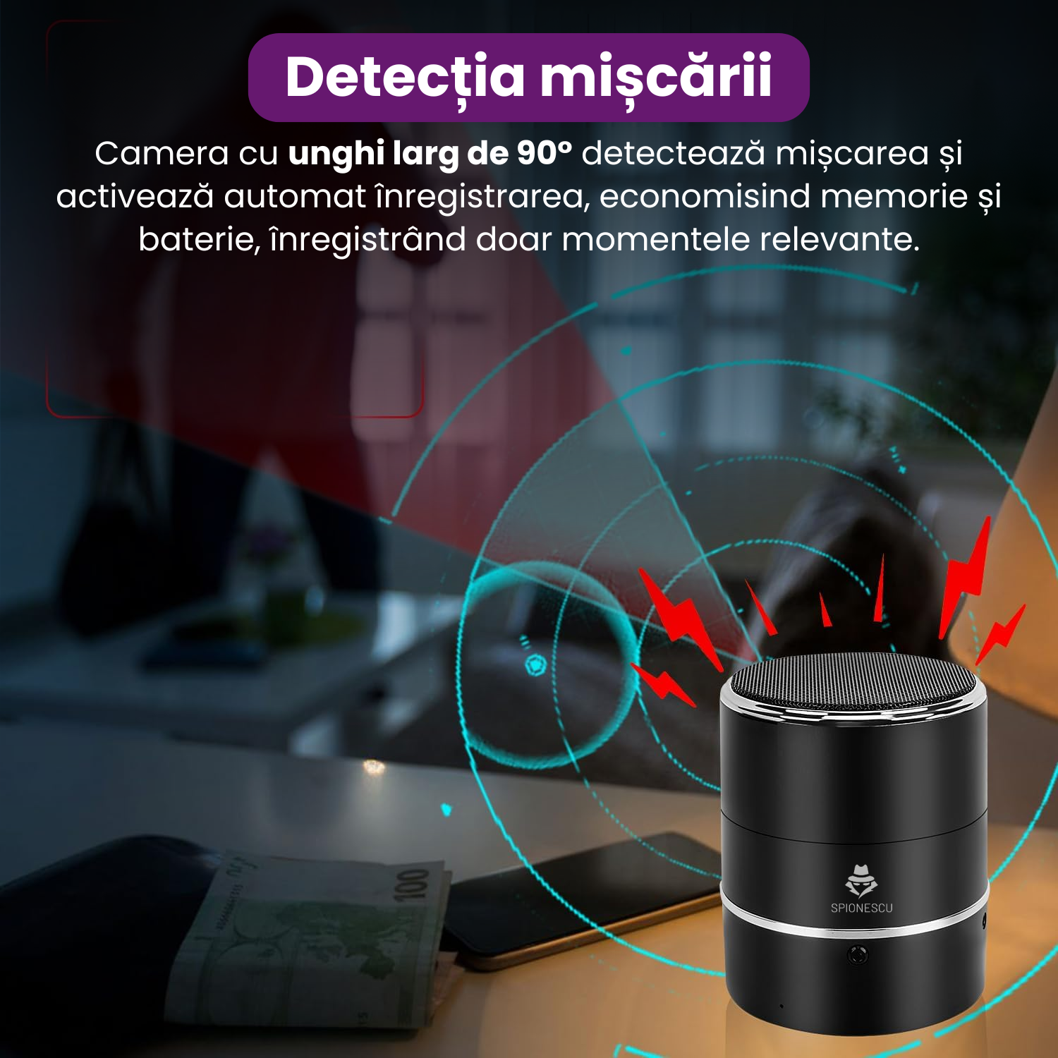 Micro camera ascunsa, VD06, WIFI, detectarea miscarii, vedere nocturna, 1080P, Android/iOS, baterie 1000 mAh, autonomie 5 ore