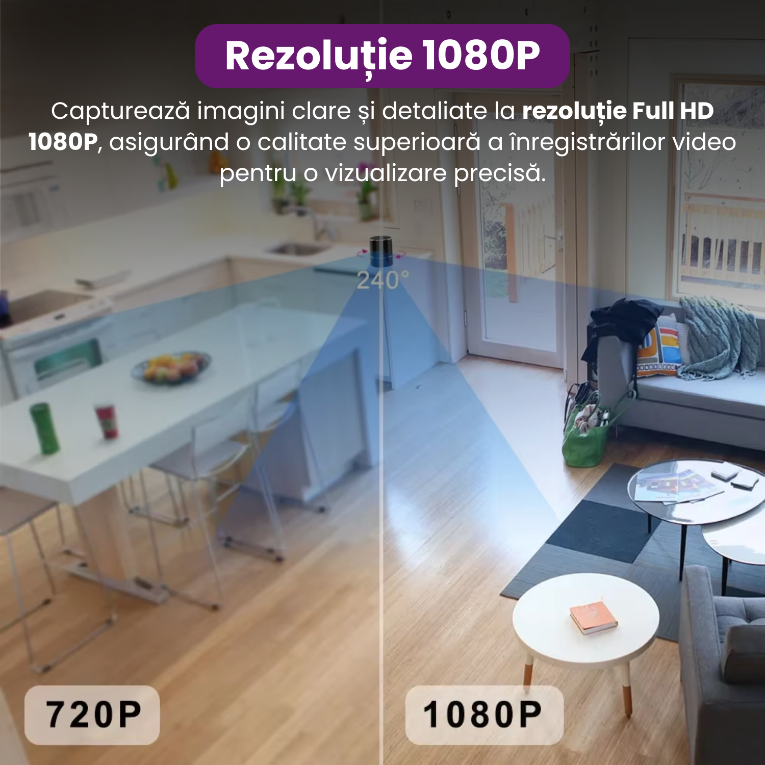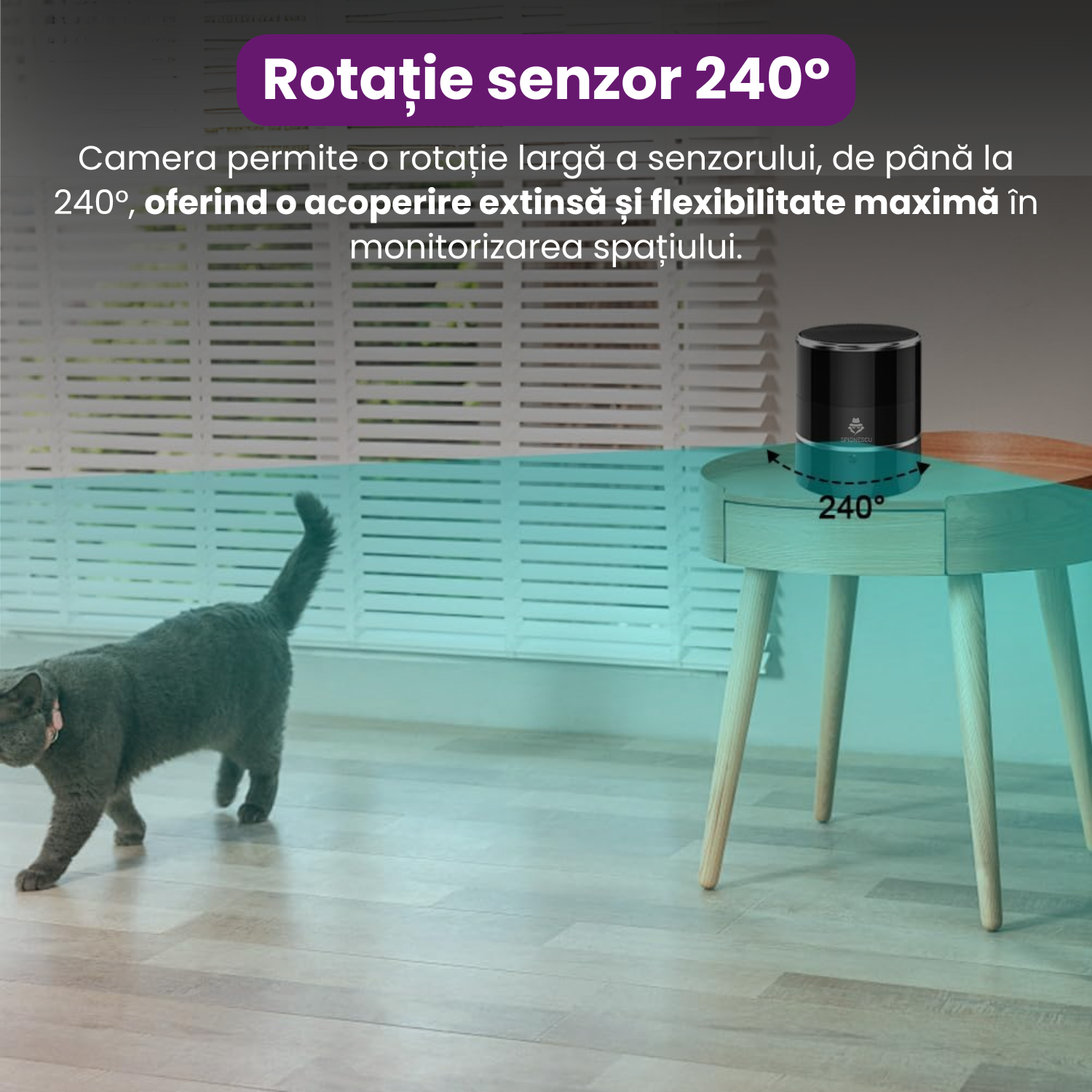 Mini camera ascunsa WiFi 360° Lentila Fisheye 1.44mm, Detectie Miscare AI, Audio Bidirectional, Night Vision, Stocare Cloud si TF, 960P HD, Montare Tavan, Acces de la Distanta