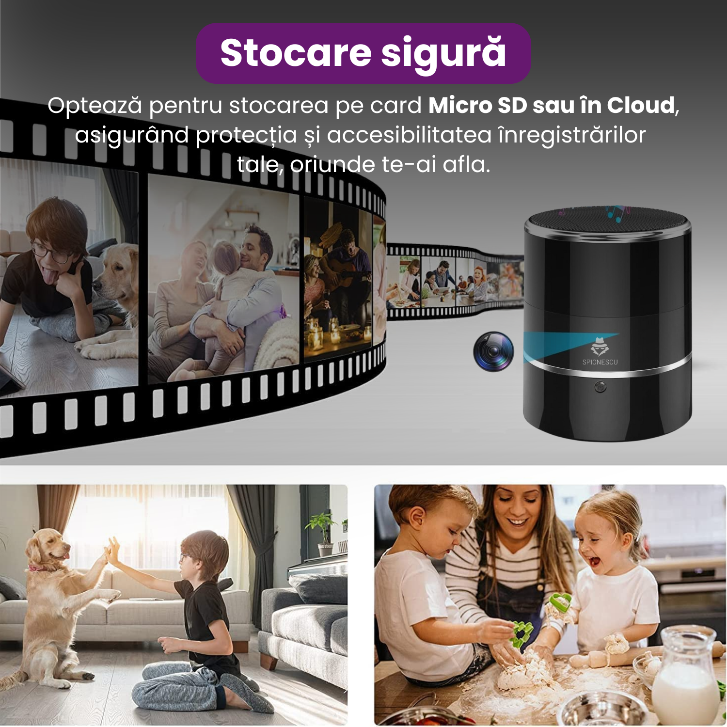 Mini camera ascunsa WiFi 4K, monitorizare in timp real, detectare miscare, viziune nocturna, control prin aplicatie, design compact si discret, negru
