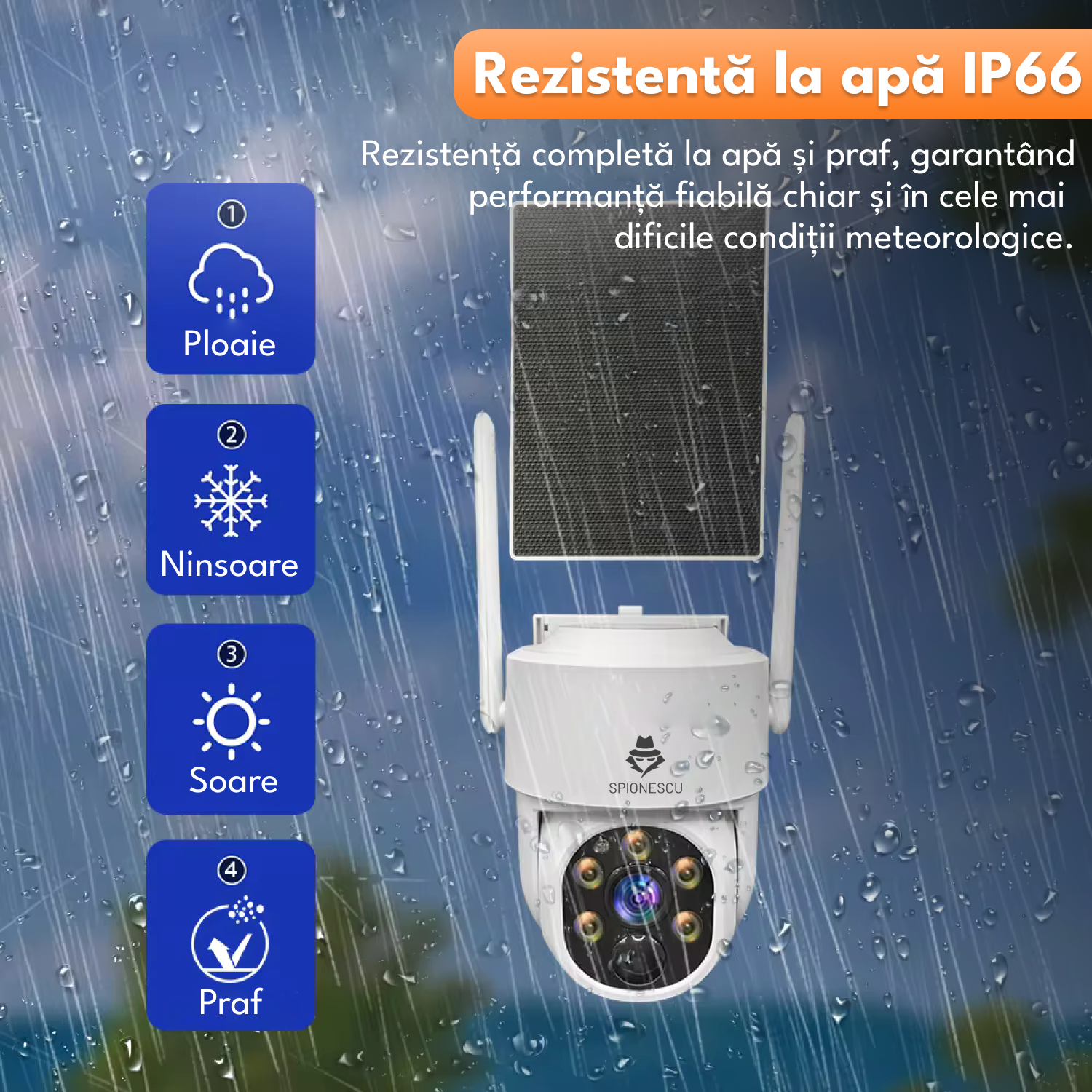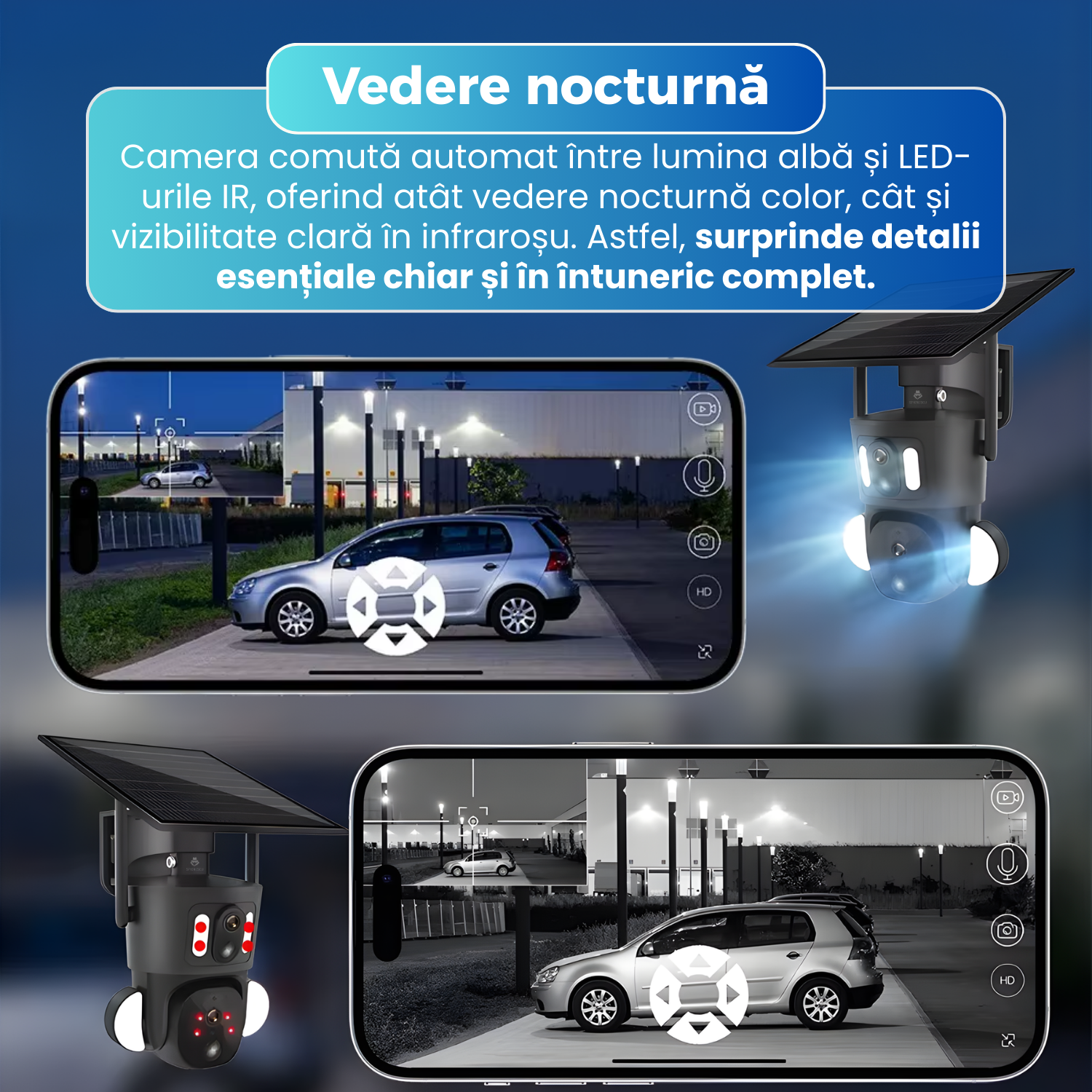 Camera de supraveghere, Q7, 2 lentile funcționale, panou solar integrat, conexiune 4G, viziune nocturna color, detectare miscare, audio bidirectional, rezistenta la apa IP66, Vizualizare panoramica 360°