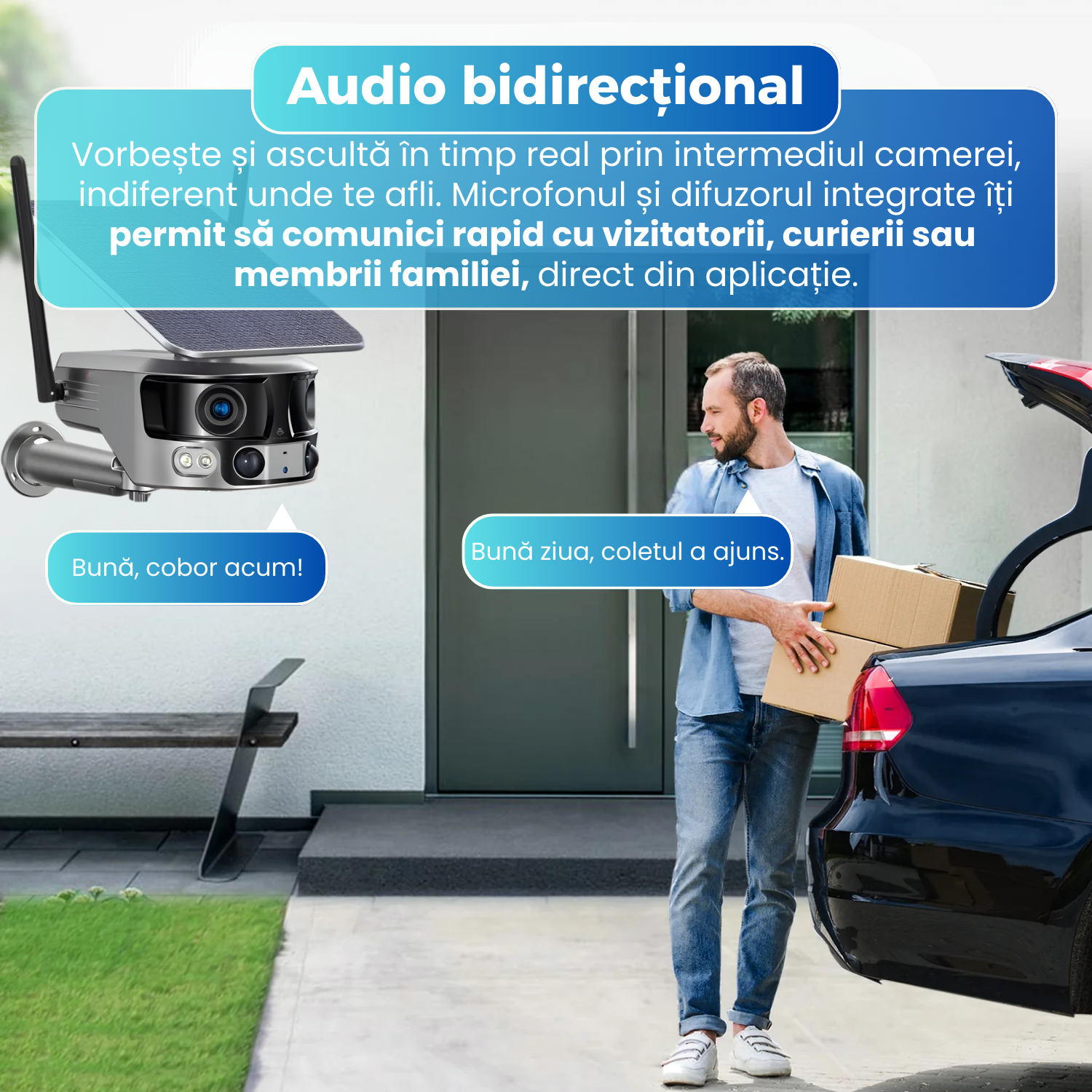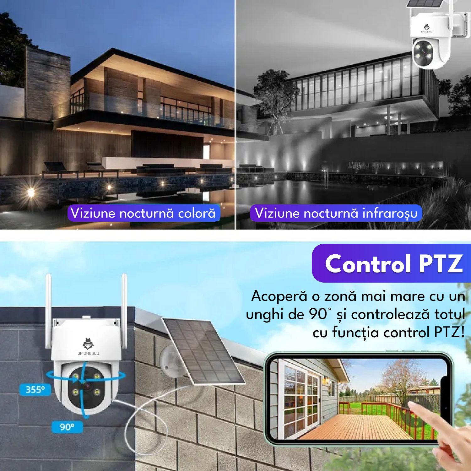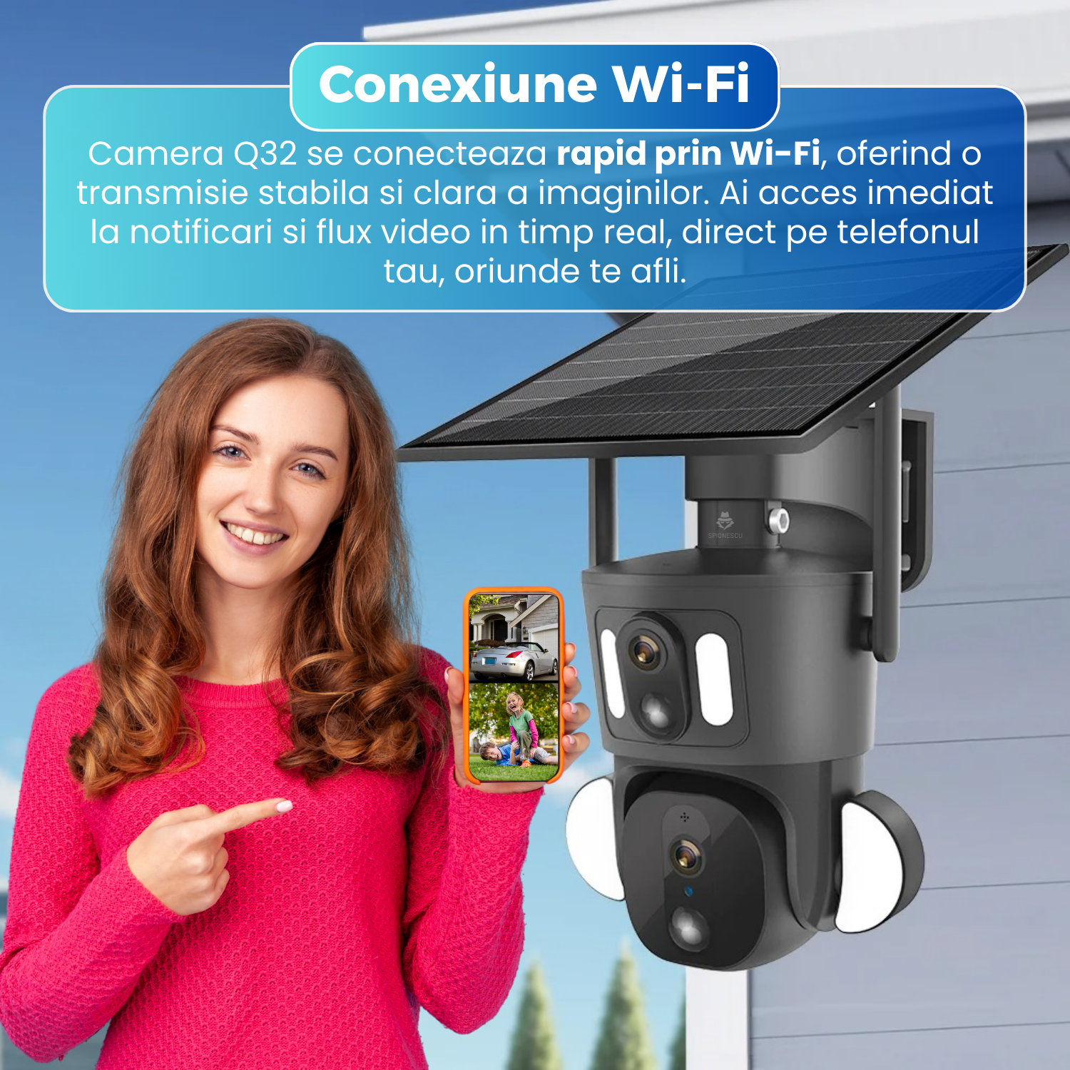 Camera de supraveghere dubla, Q32, 4G, 4MP, PTZ, CCTV, IP 66, panou solar 9W, vedere panoramica 360º, detectare AI, night vision color, infrarosu, comunicare bidirectionala