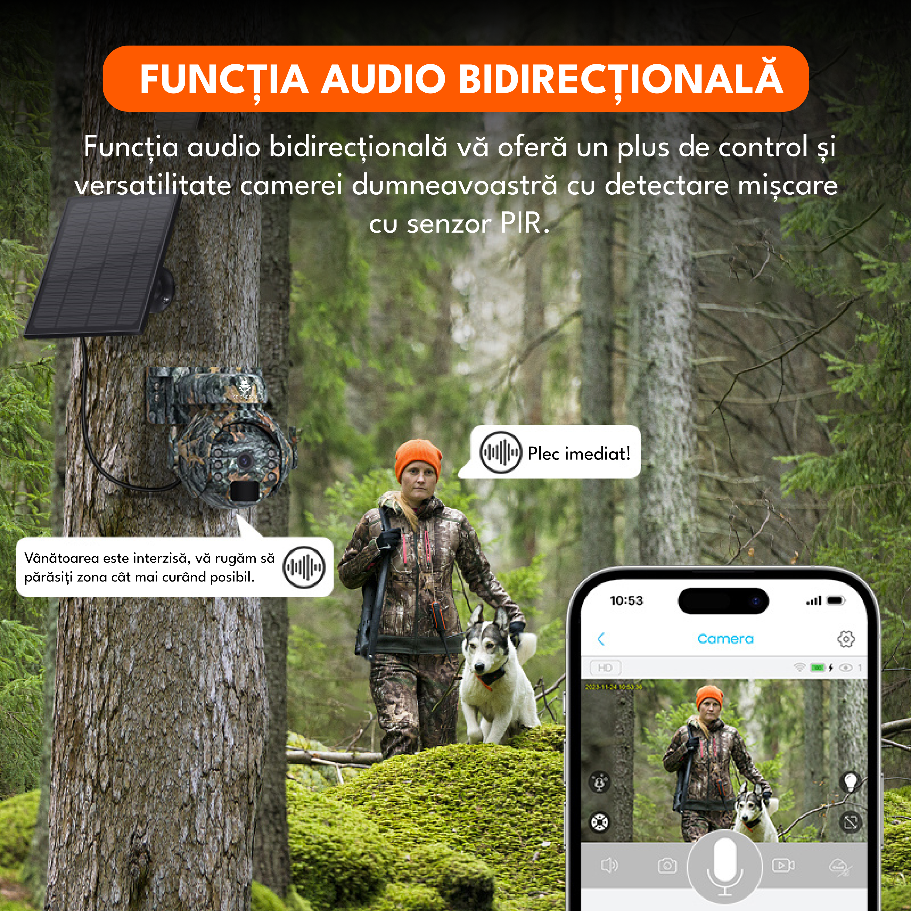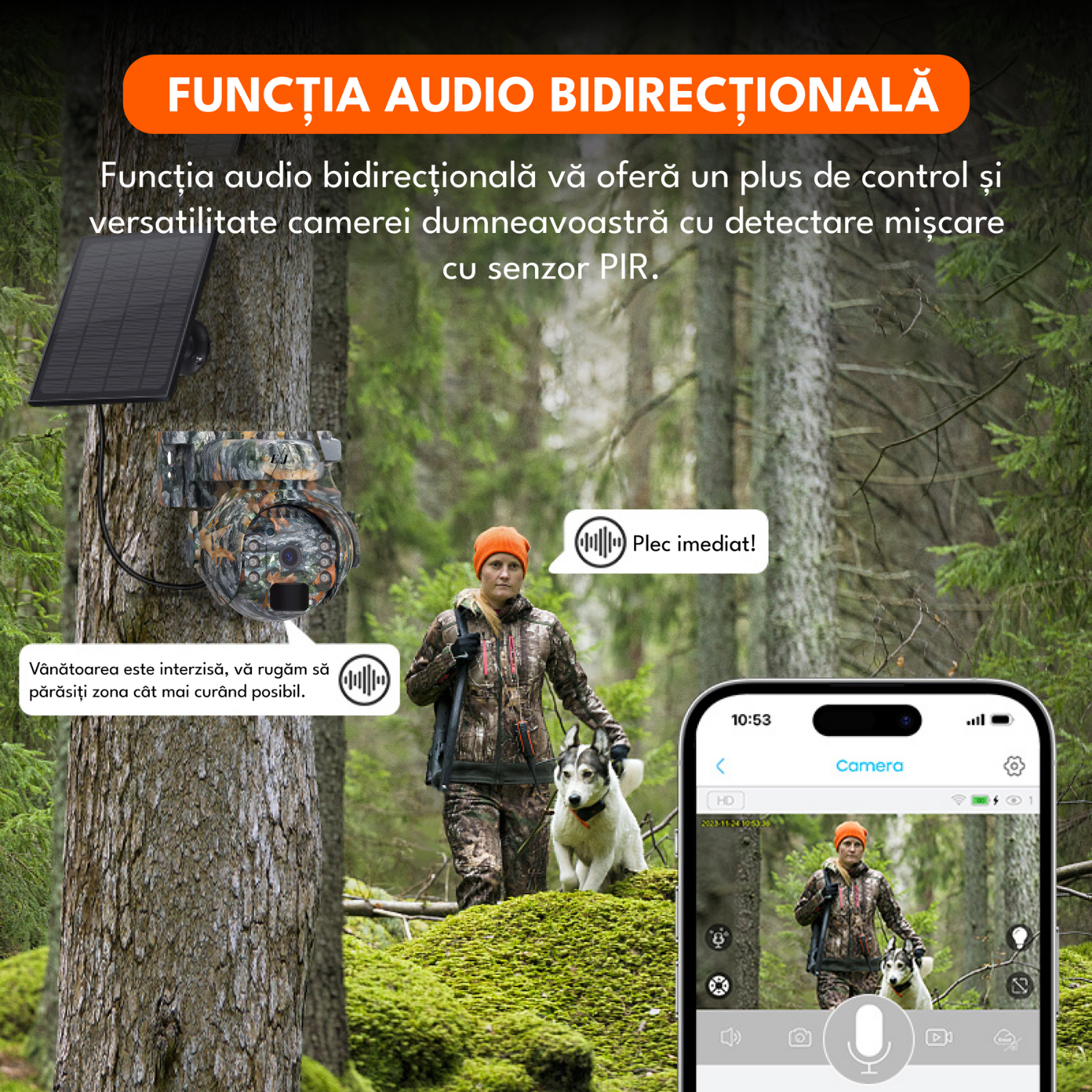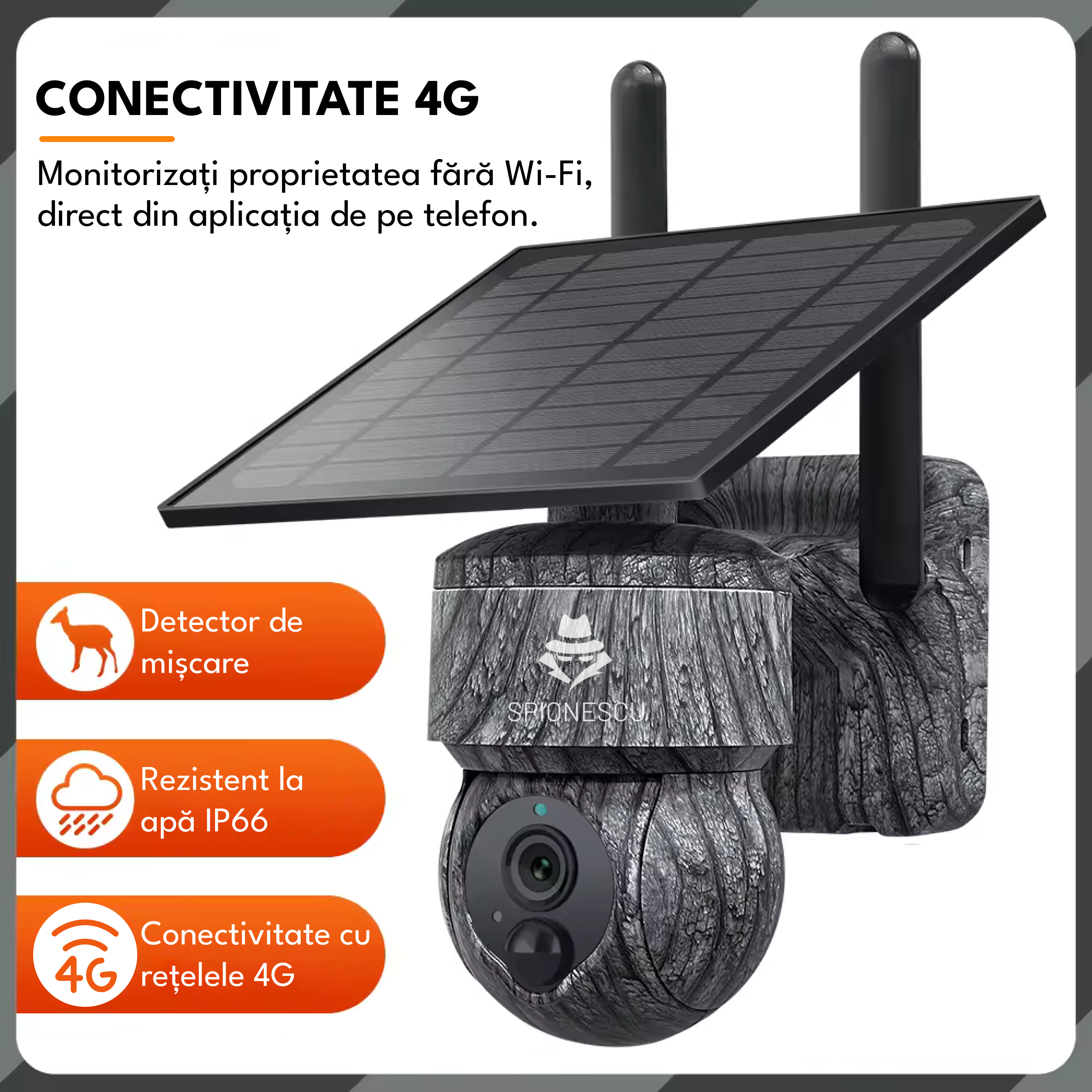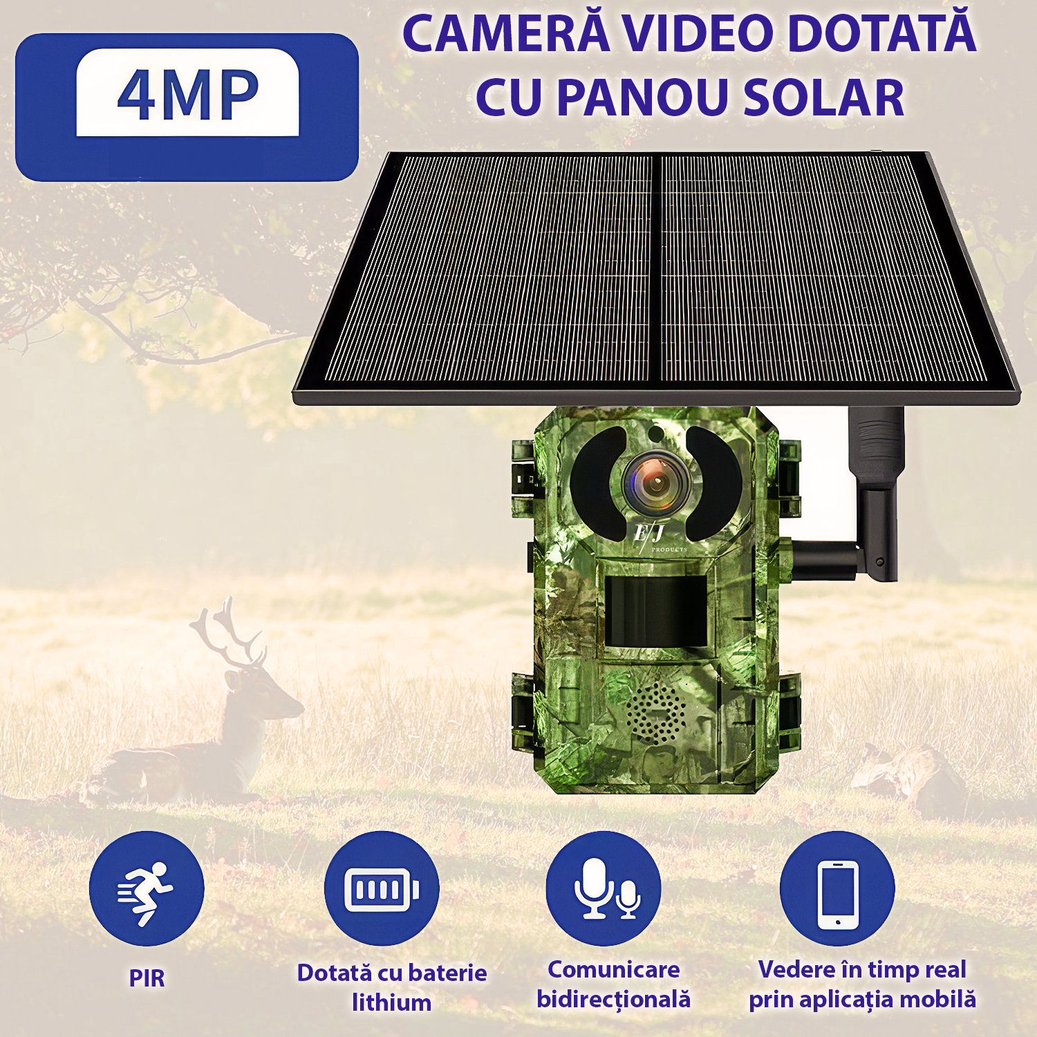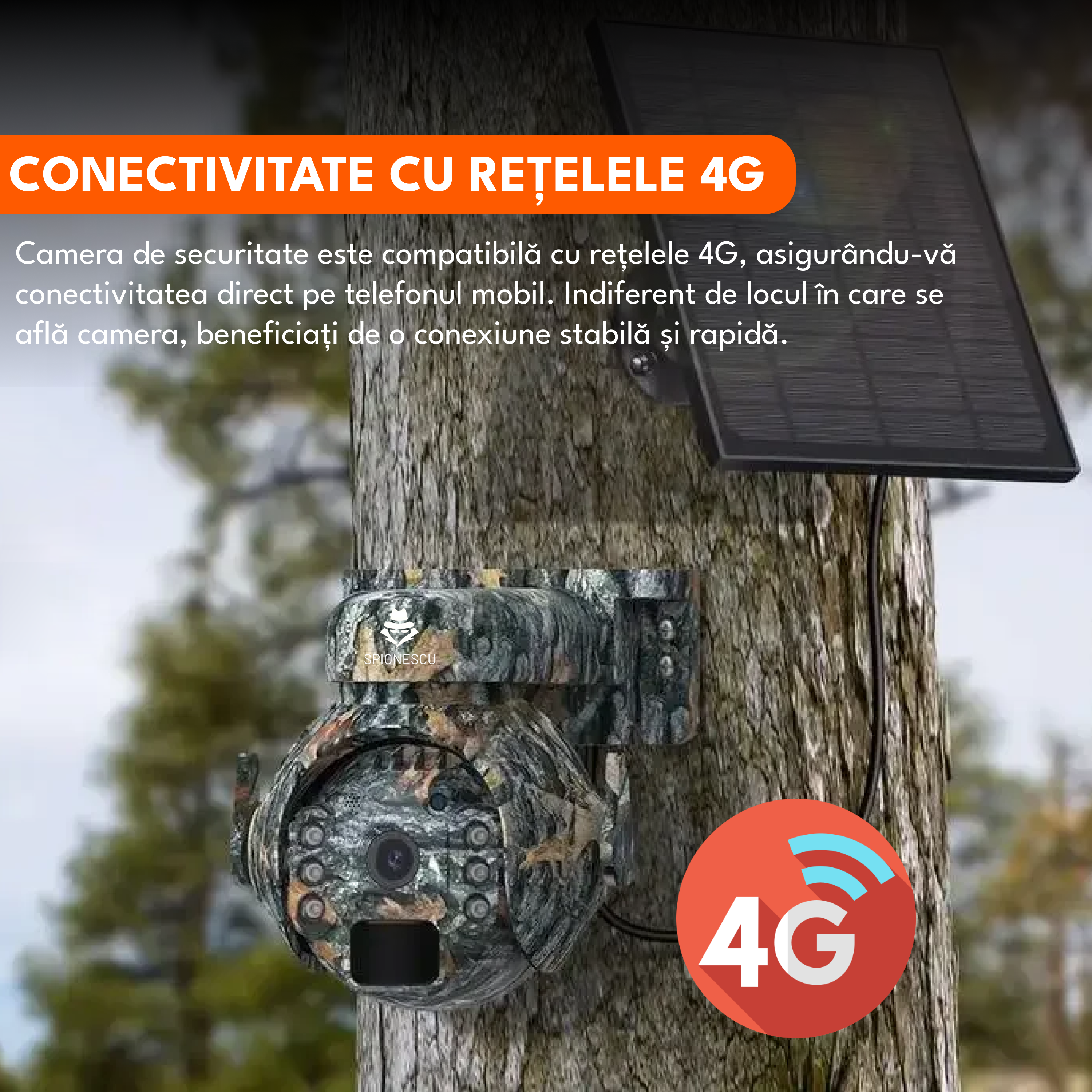Camera de supraveghere, 4G, 3MP, rotire 355°, inclinare 90°, alimentare solara, video, audio bidirectional, vizionare nocturna, detectarea miscarii, camuflaj