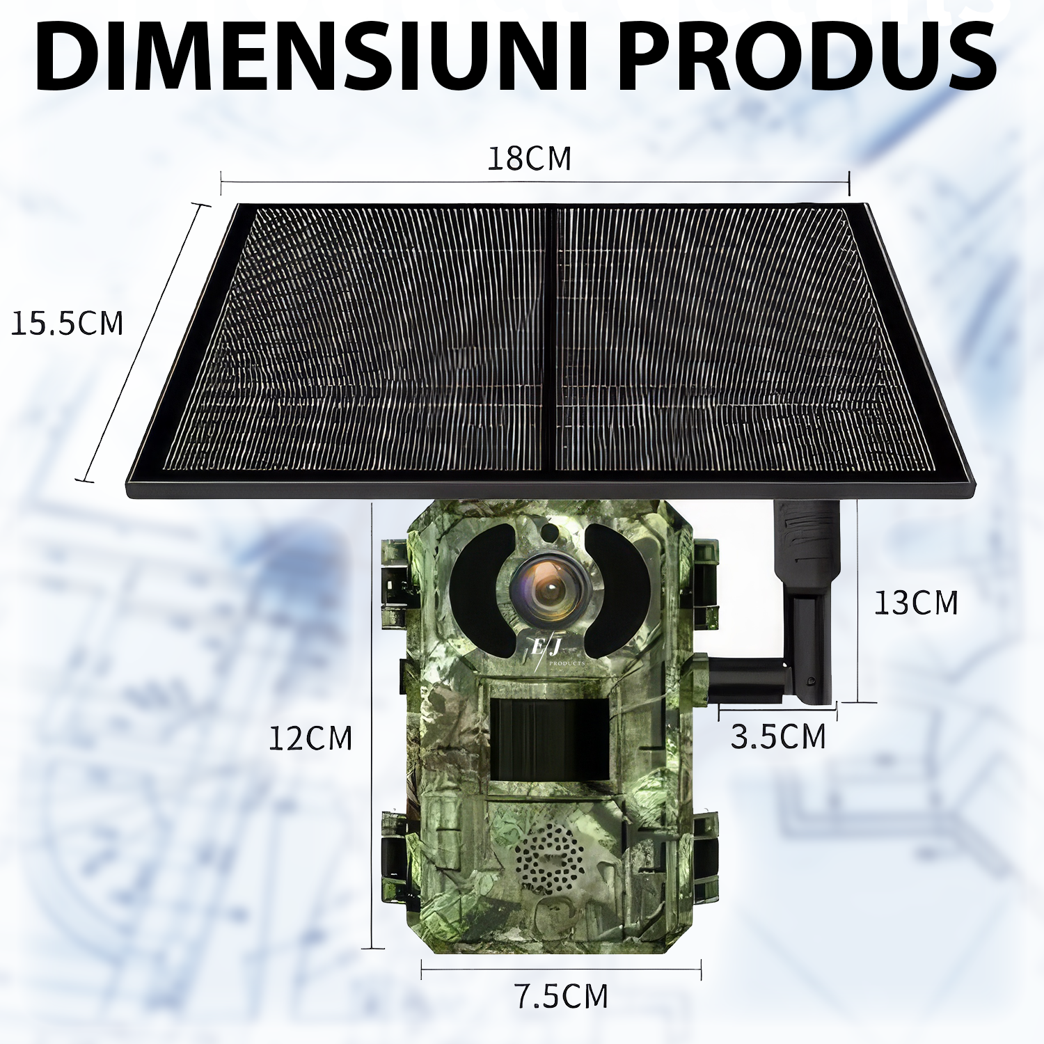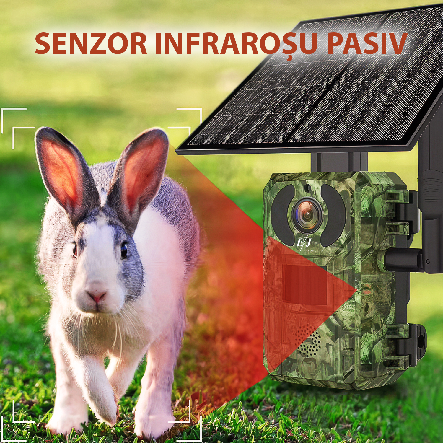 Camera video de vanatoare cu panou solar, H104G, 4MP, 4G, baterie 7800mAh, panou solar 6W, raza actiune pe timp de noapte 25 m, IR, vizionare nocturna, detectarea miscarii, IP66, camuflaj