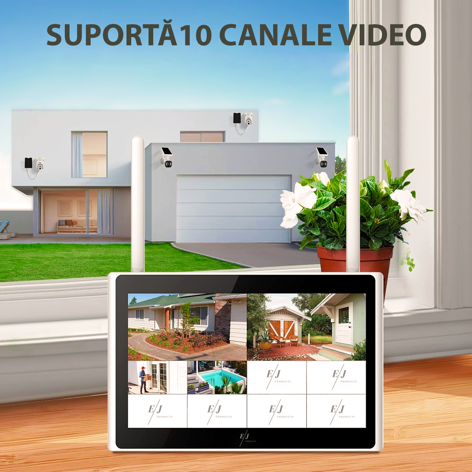 Kit complet de supraveghere video cu 4 camere si panou solar, K8510, WIFI, 4MP, 1 TB, capacitate baterie 9000mAh, NVR 10 canale, comunicare bidirectionala, senzor miscare, viziune nocturna, control PTZ