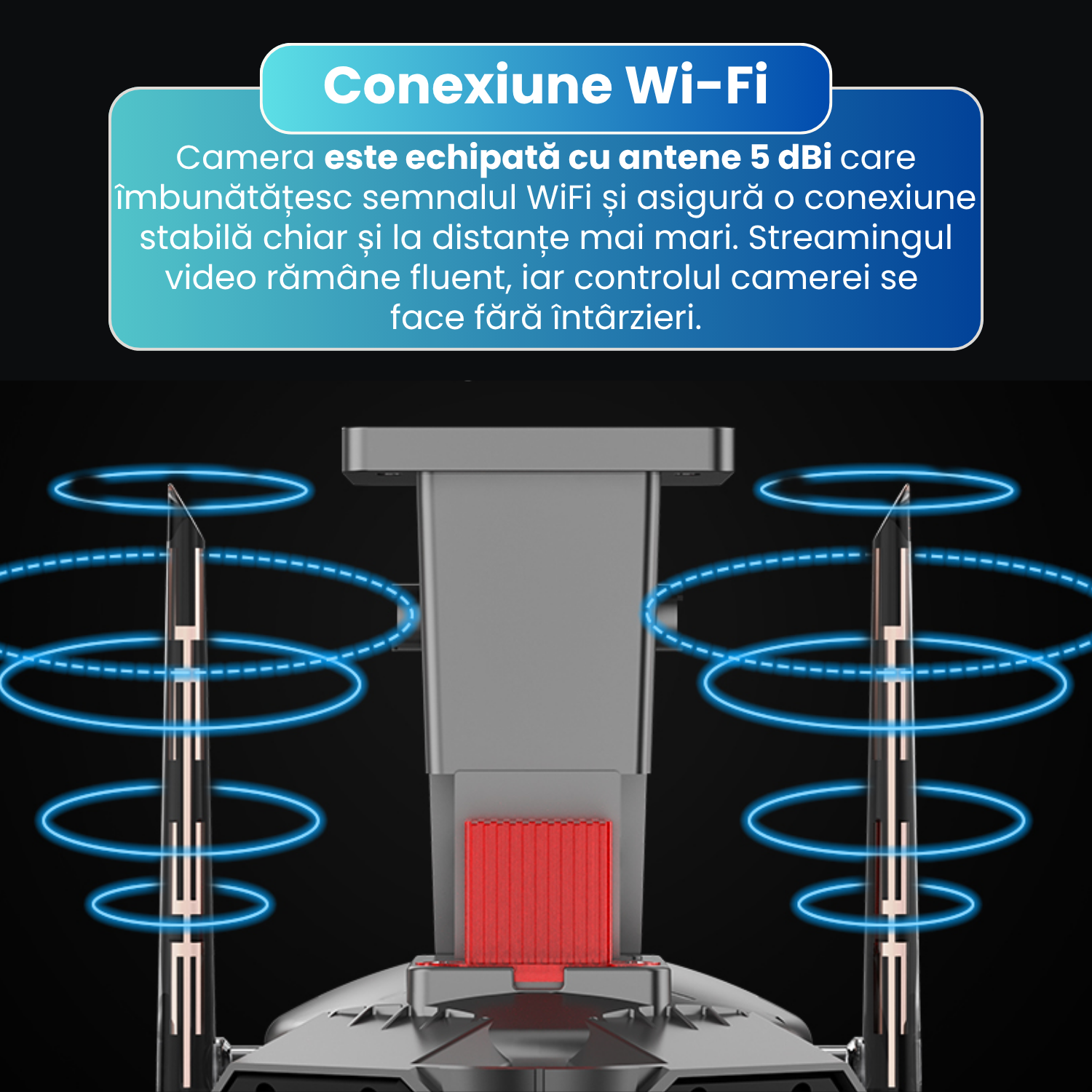 Camera de supraveghere, WiFi, 8MP, 4K, zoom digital 8x, detectie umana AI, vedere nocturna, urmarire automata, audio bidirectional, lentile duble, rezistenta apa IP66