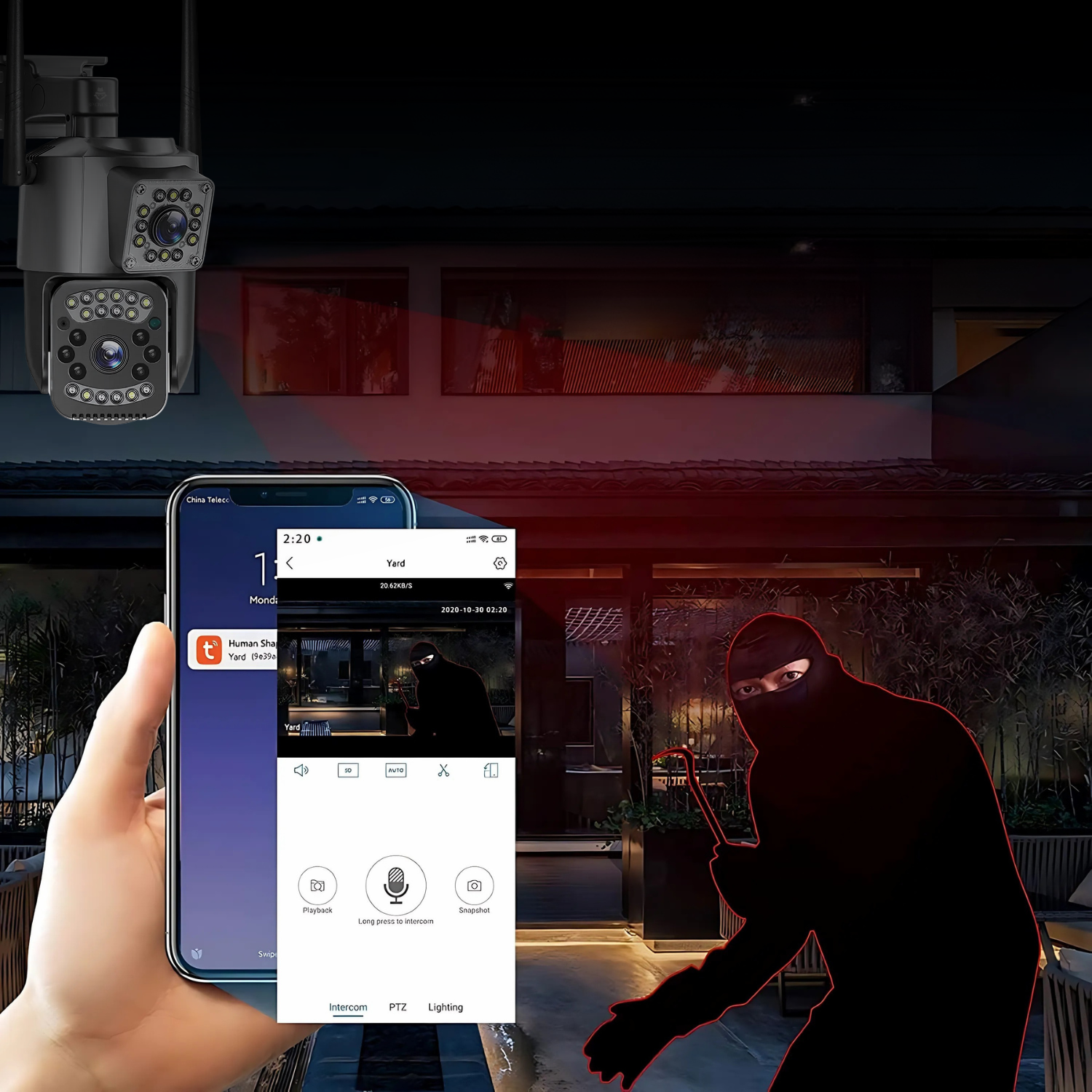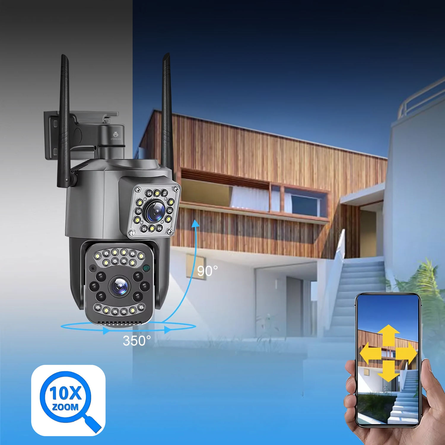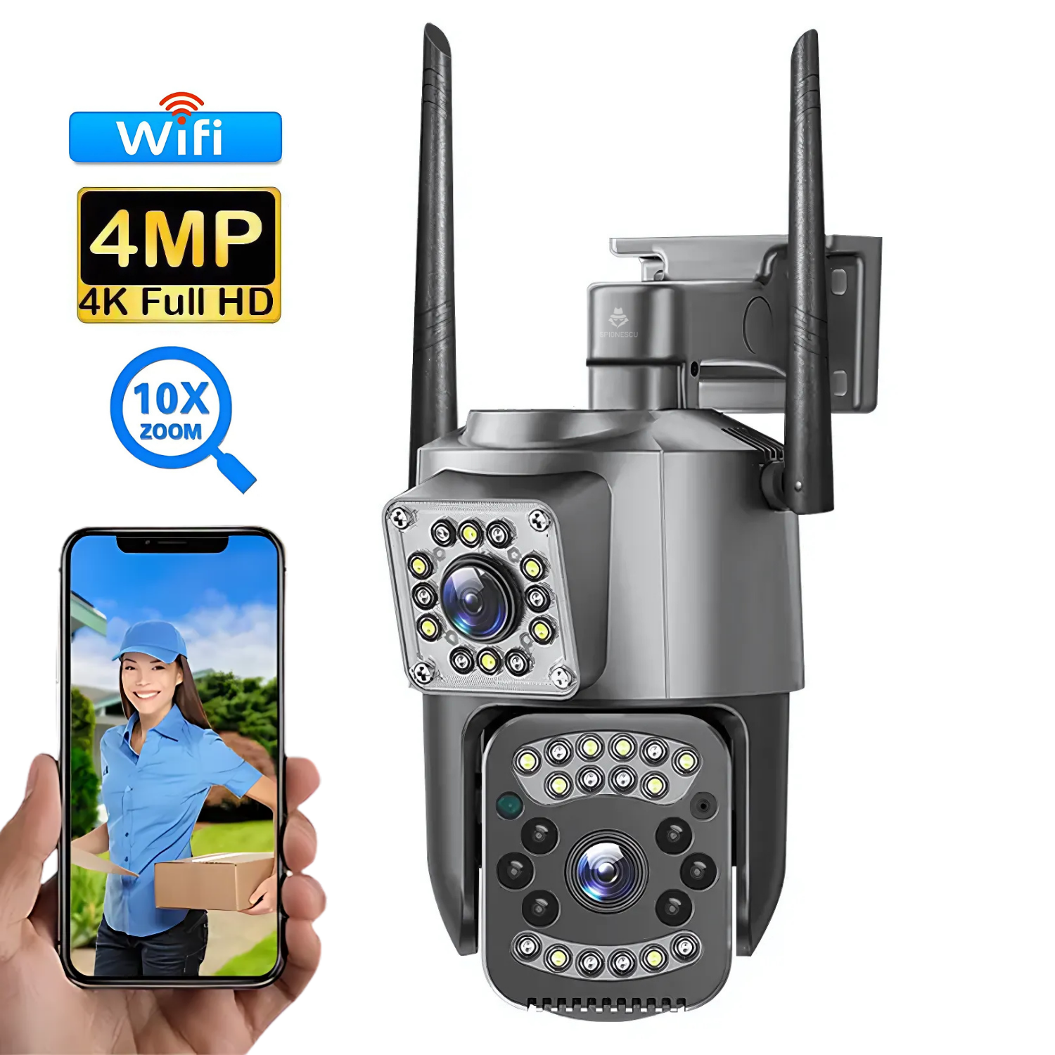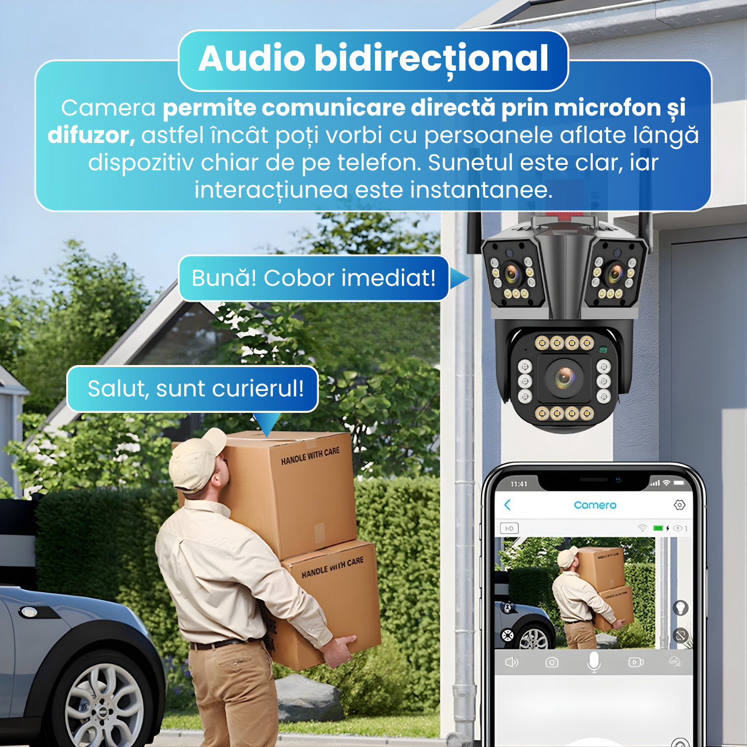 Camera de supraveghere tripla 4K, WIFI, 9MP, PTZ, CCTV, zoom 10x