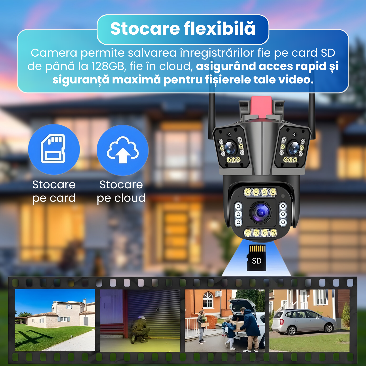 Camera de supraveghere tripla 5K, WIFI, 12MP, 32 GB, PTZ, CCTV, zoom 10x