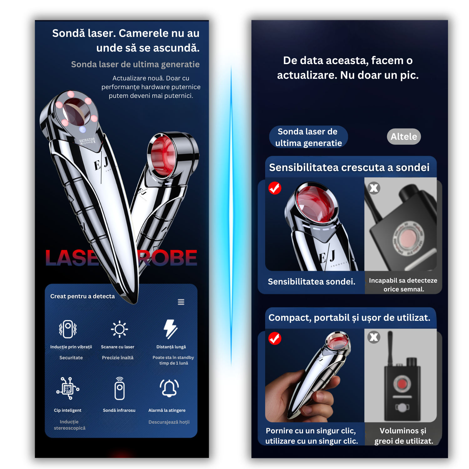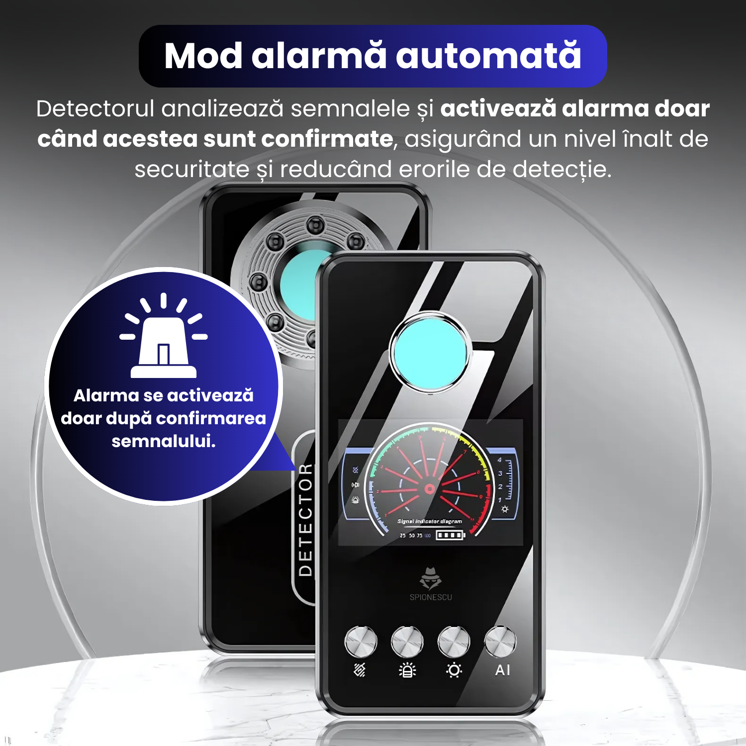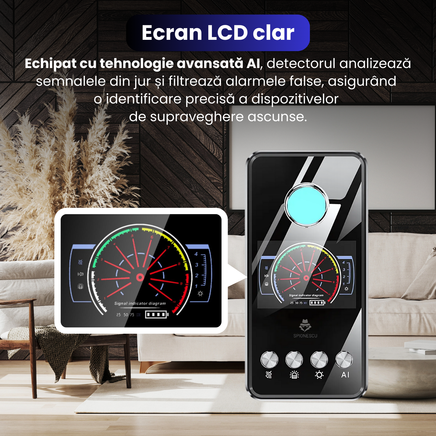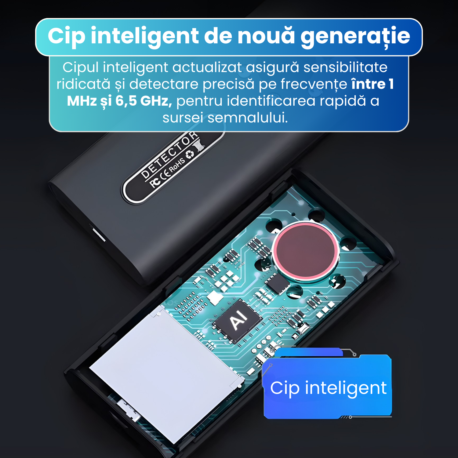 Detector Profesional Camere Ascunse, Microfoane si GPS AL-T2 — Tehnologie AI, 4 in 1, Scanare RF 1MHz–8GHz, Laser, Camp Magnetic, Alerta Automata, Portabil, Baterie 2000mAh