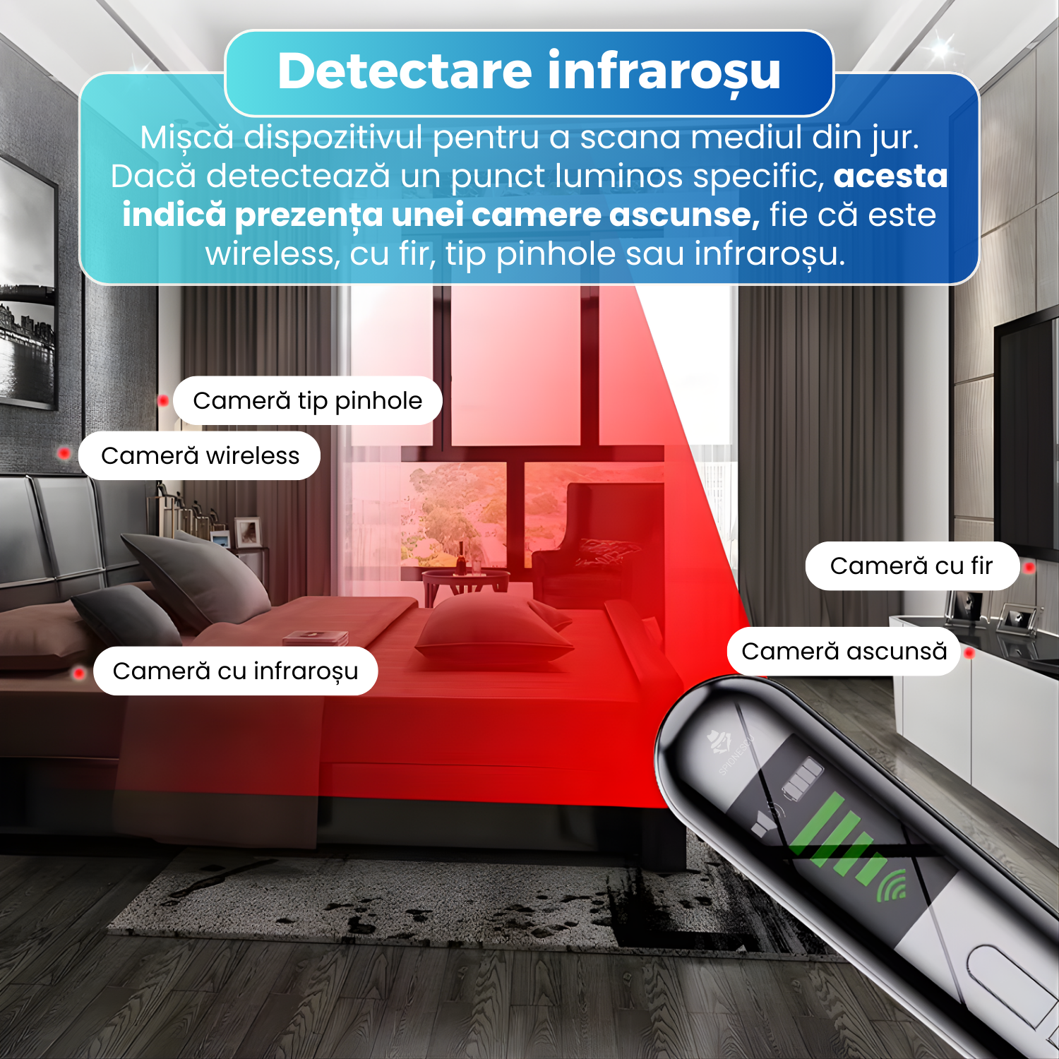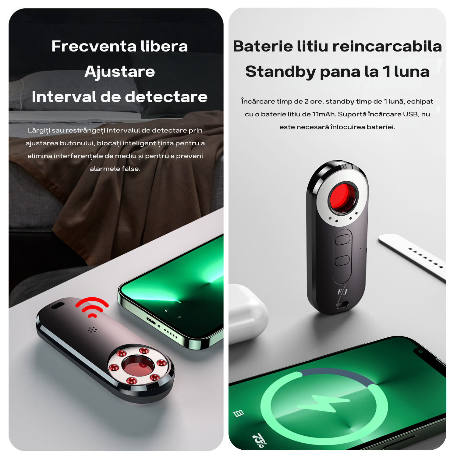 Detector camere ascunse, microfoane, localizator GPS, autonomie mare - T9 Pro
