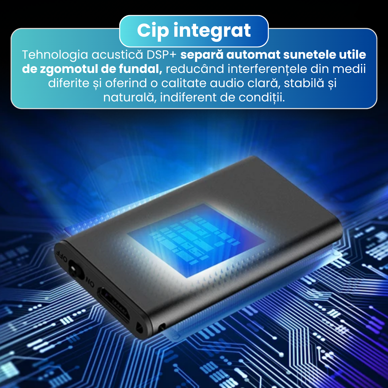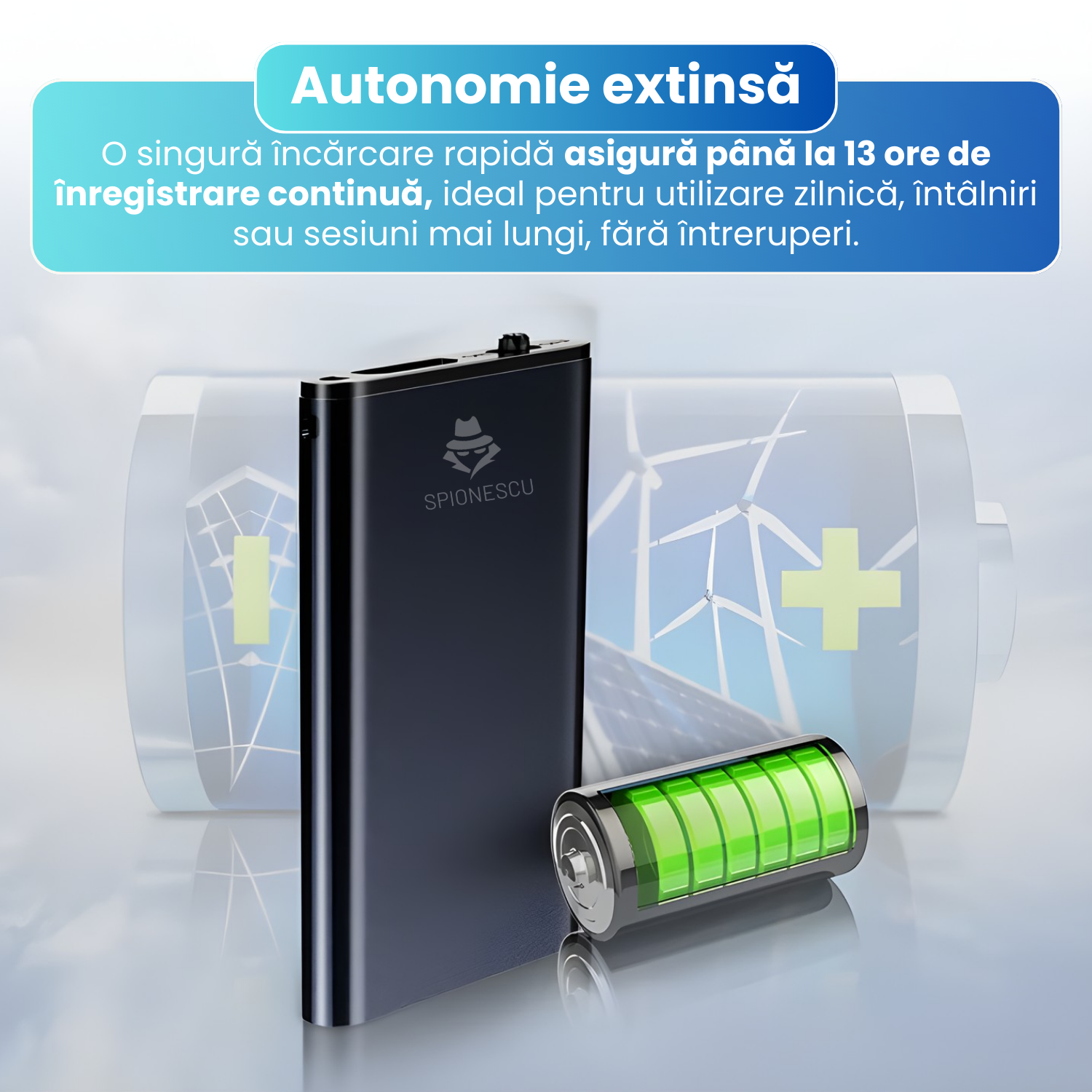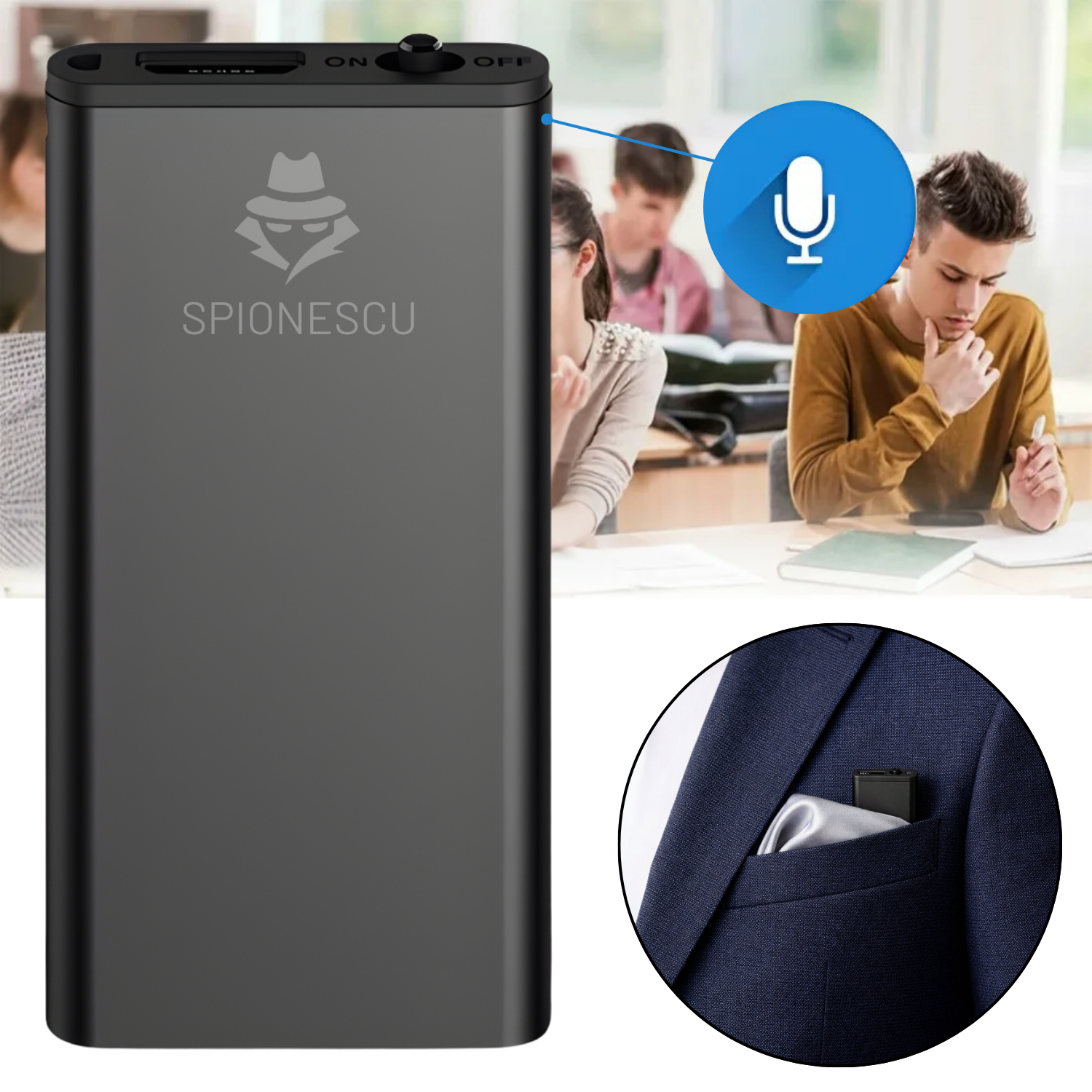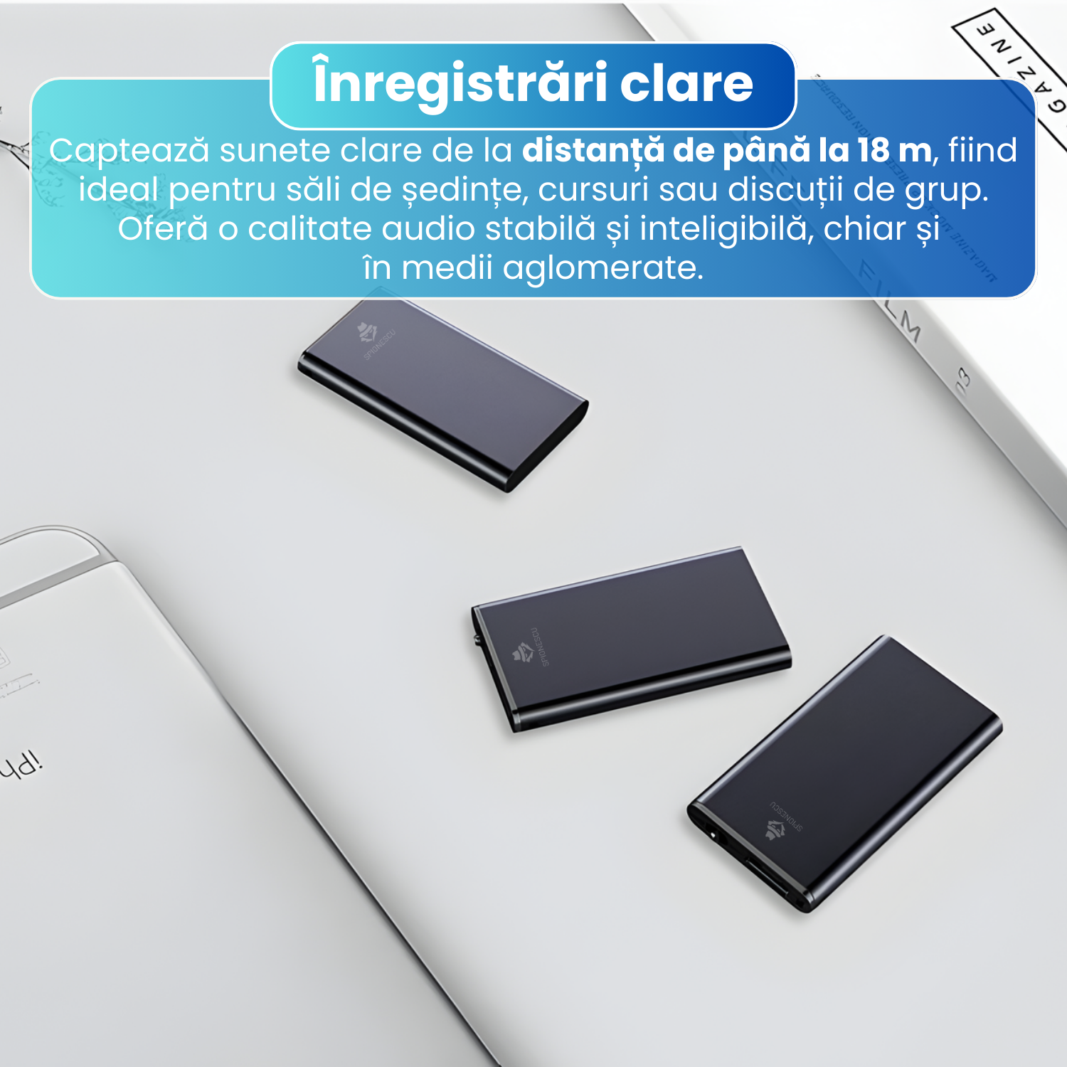 Mini reportofon spion 16 GB, raza actiune 60m, stocare 384 ore, activare vocala, functie MP3, reducere zgomot de fundal, autonomie 24h, design compact si portabil