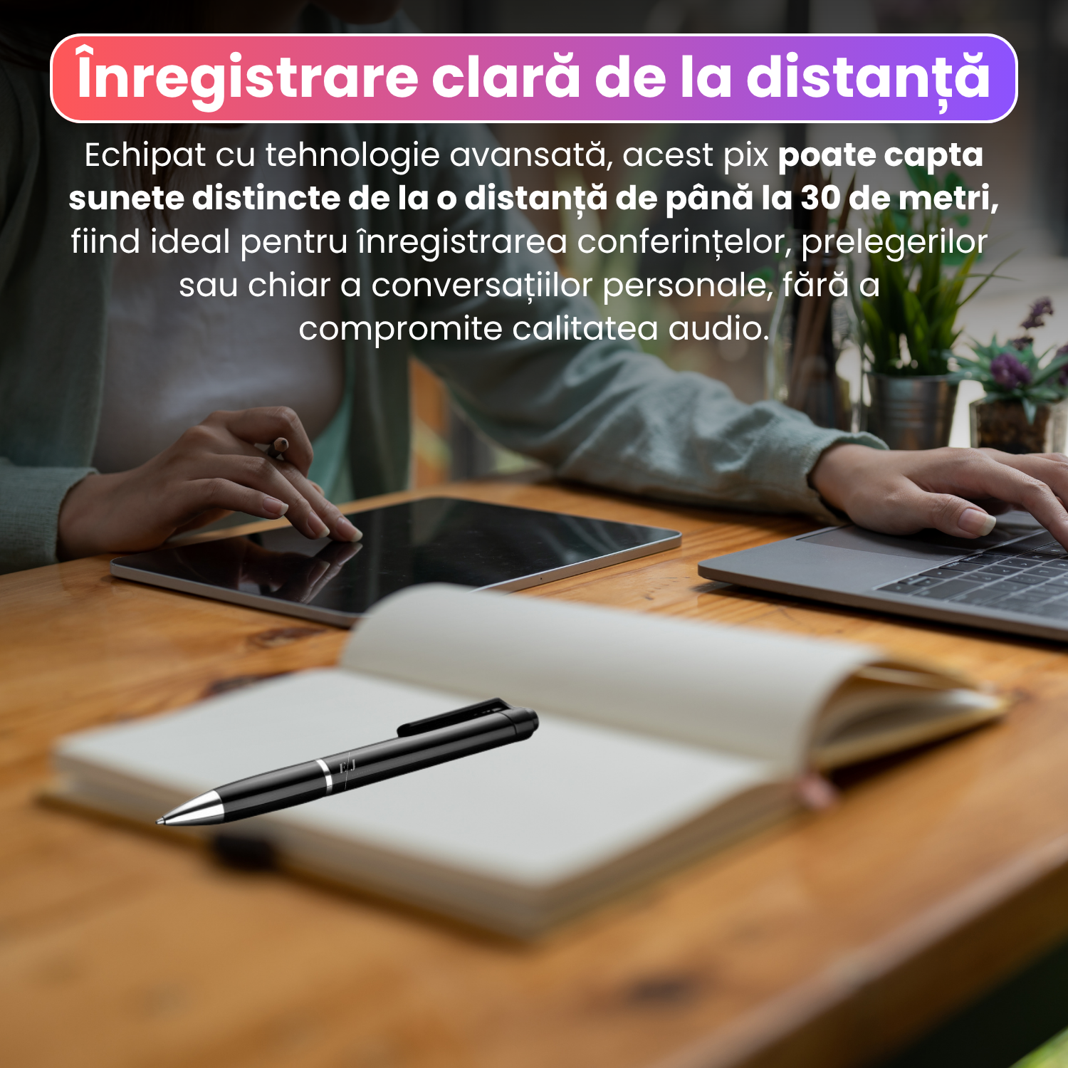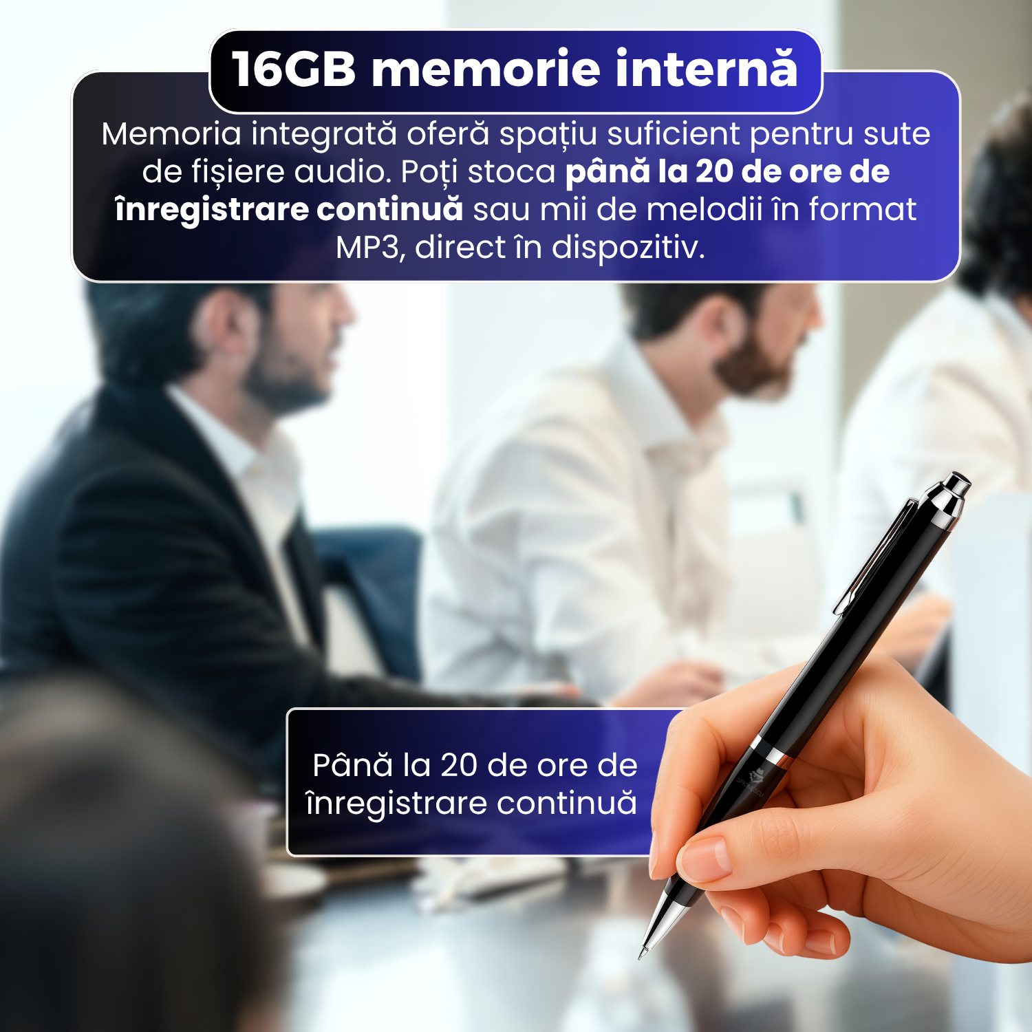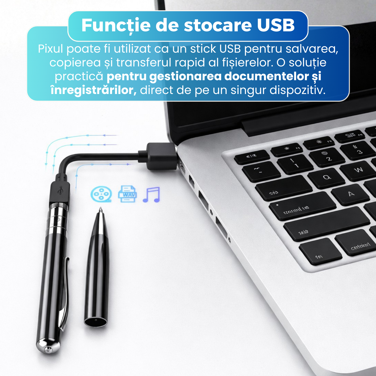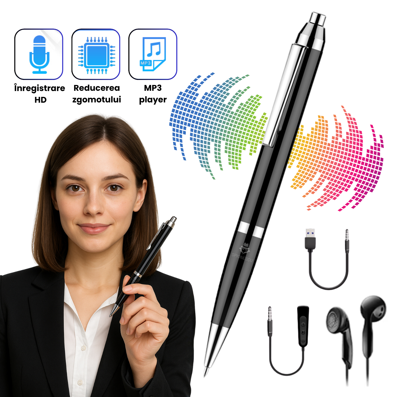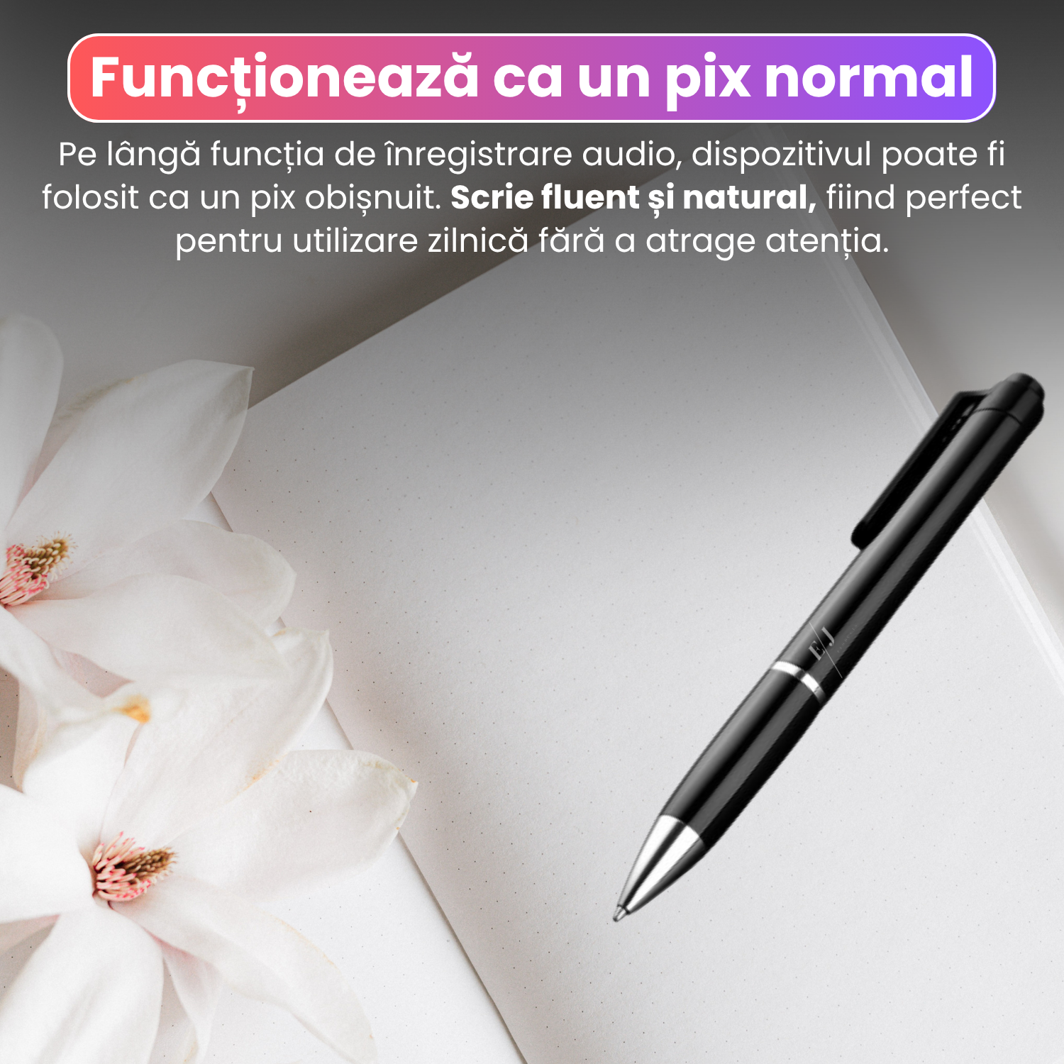 Reportofon spion integrat in pix, Q40, 8 GB, autonomie 10 ore, activare vocala, functie MP3, design elegant, inregistrare HD, portabil si discret