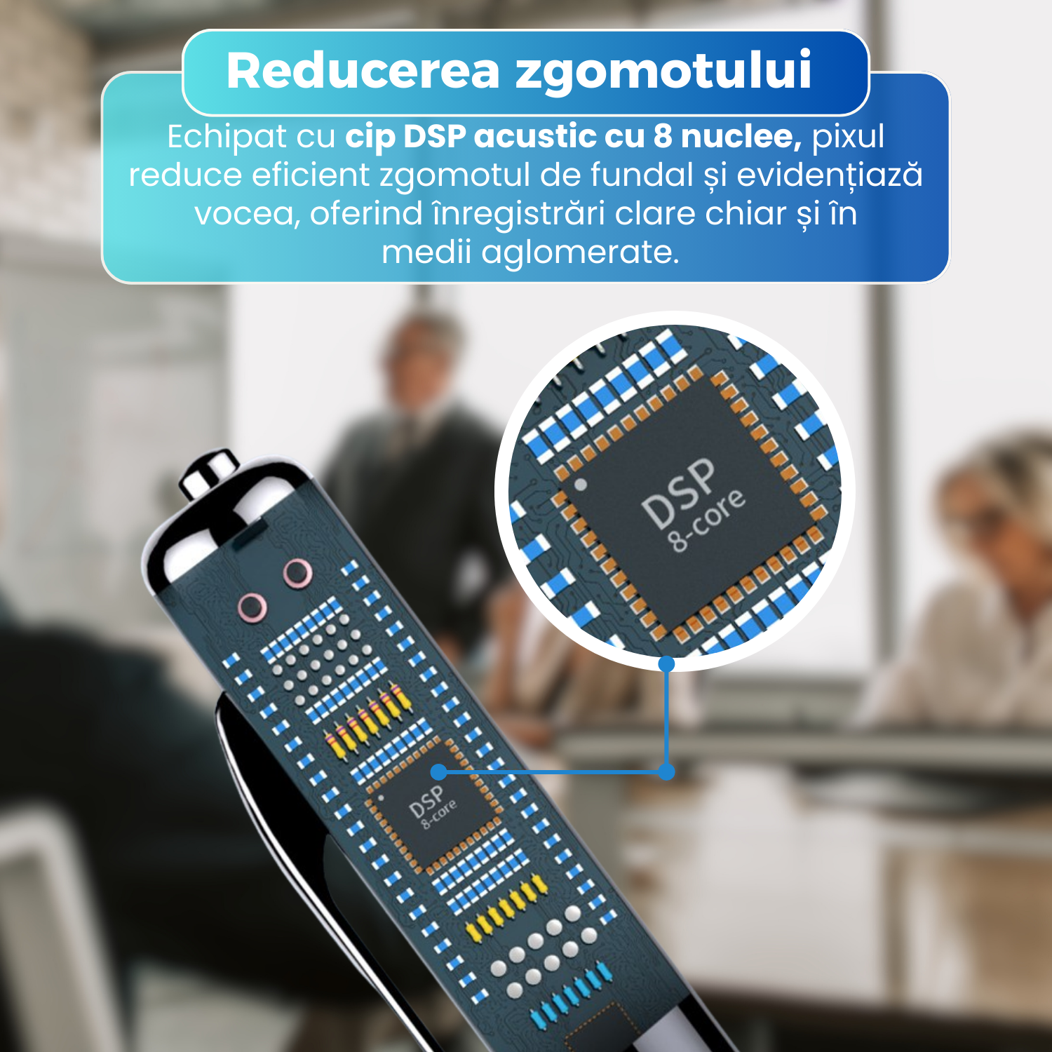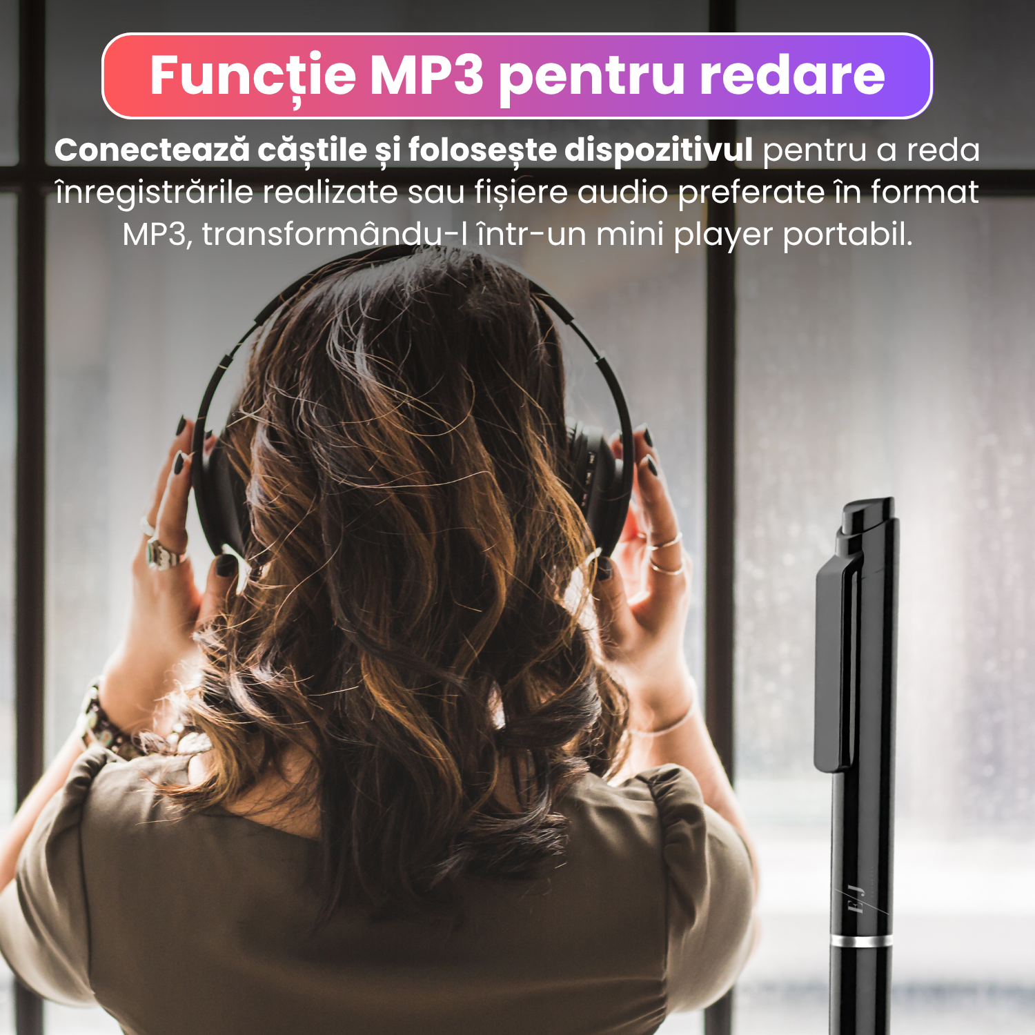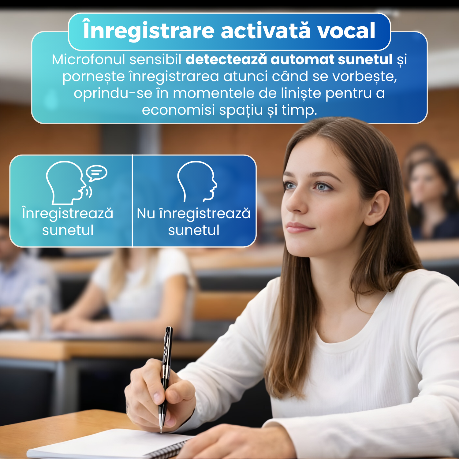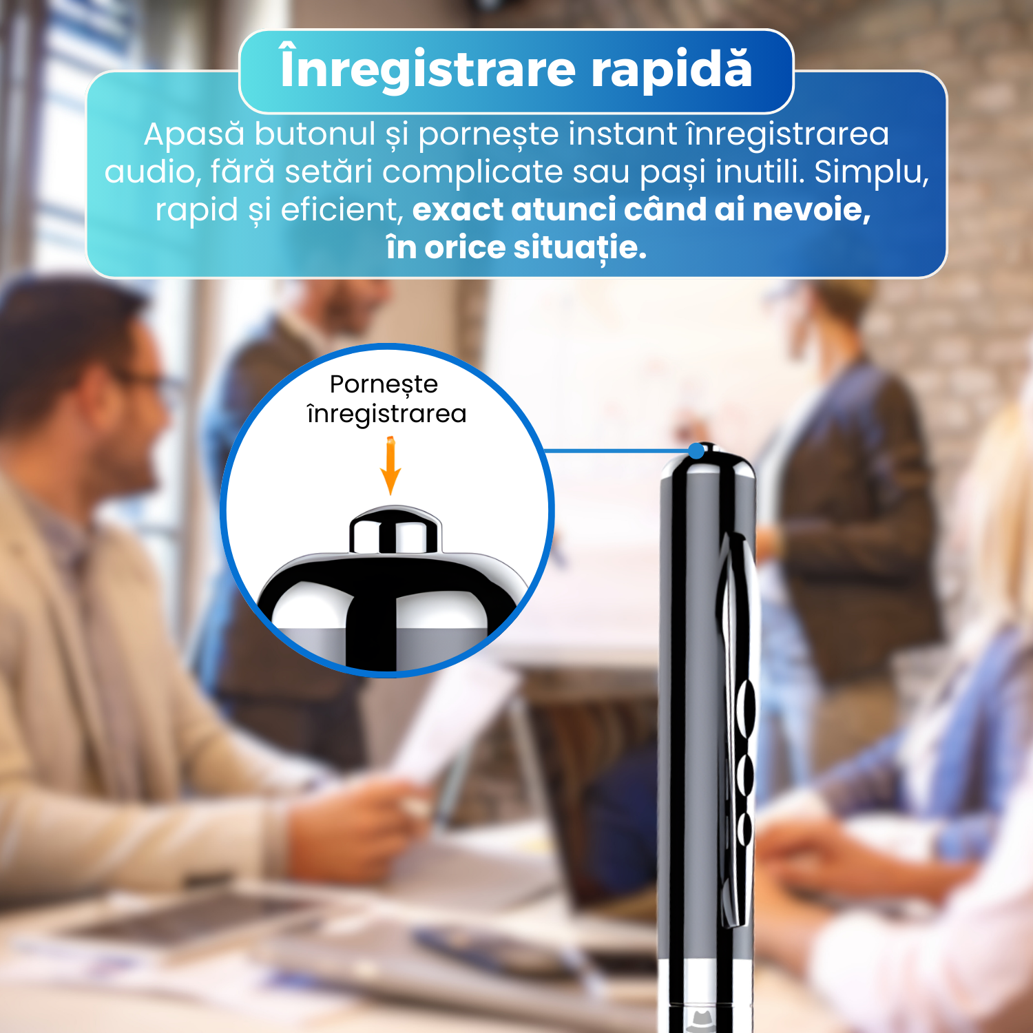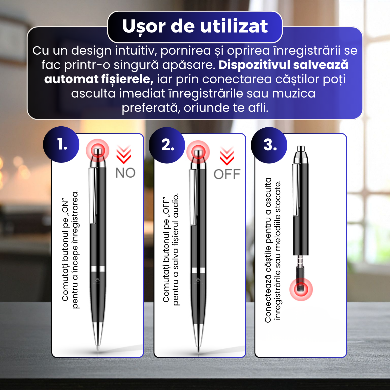 Reportofon spion integrat in pix, Q40, 8 GB, autonomie 10 ore, activare vocala, functie MP3, design elegant, inregistrare HD, portabil si discret