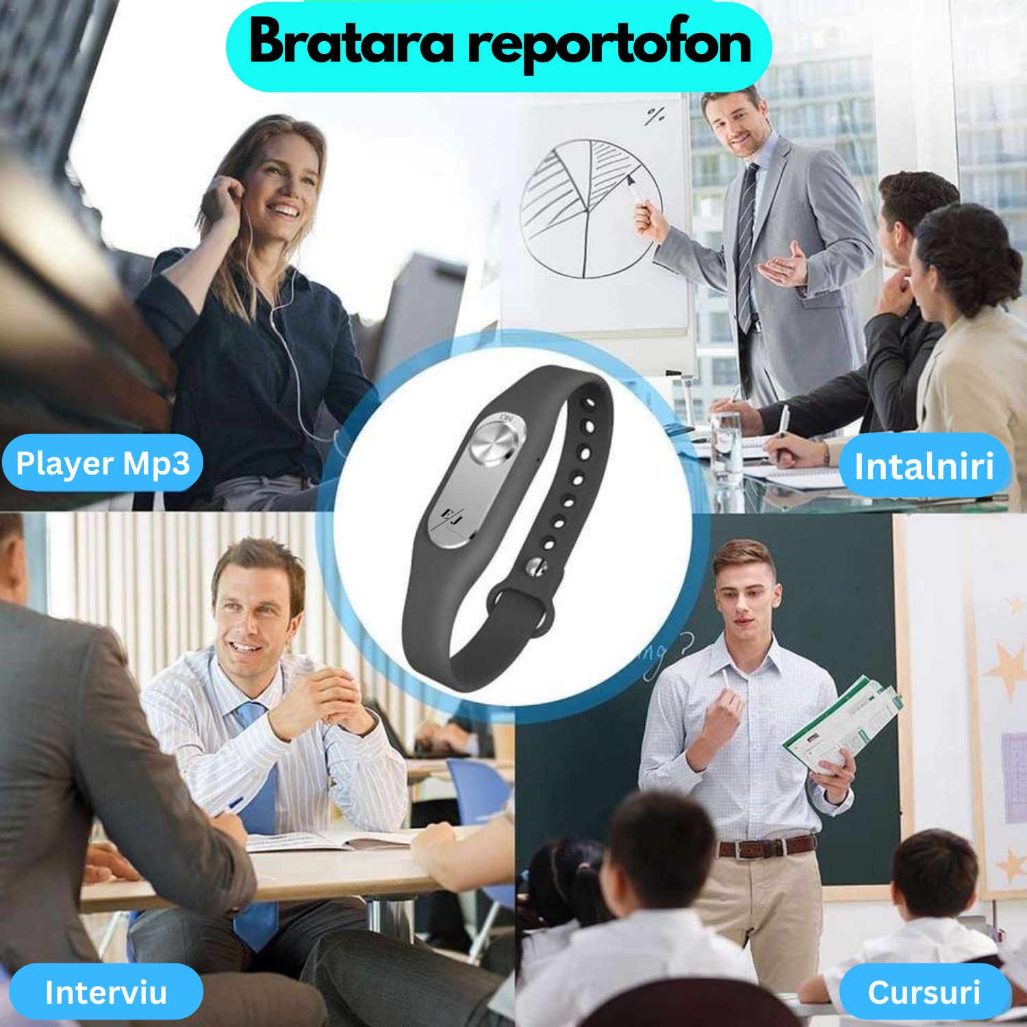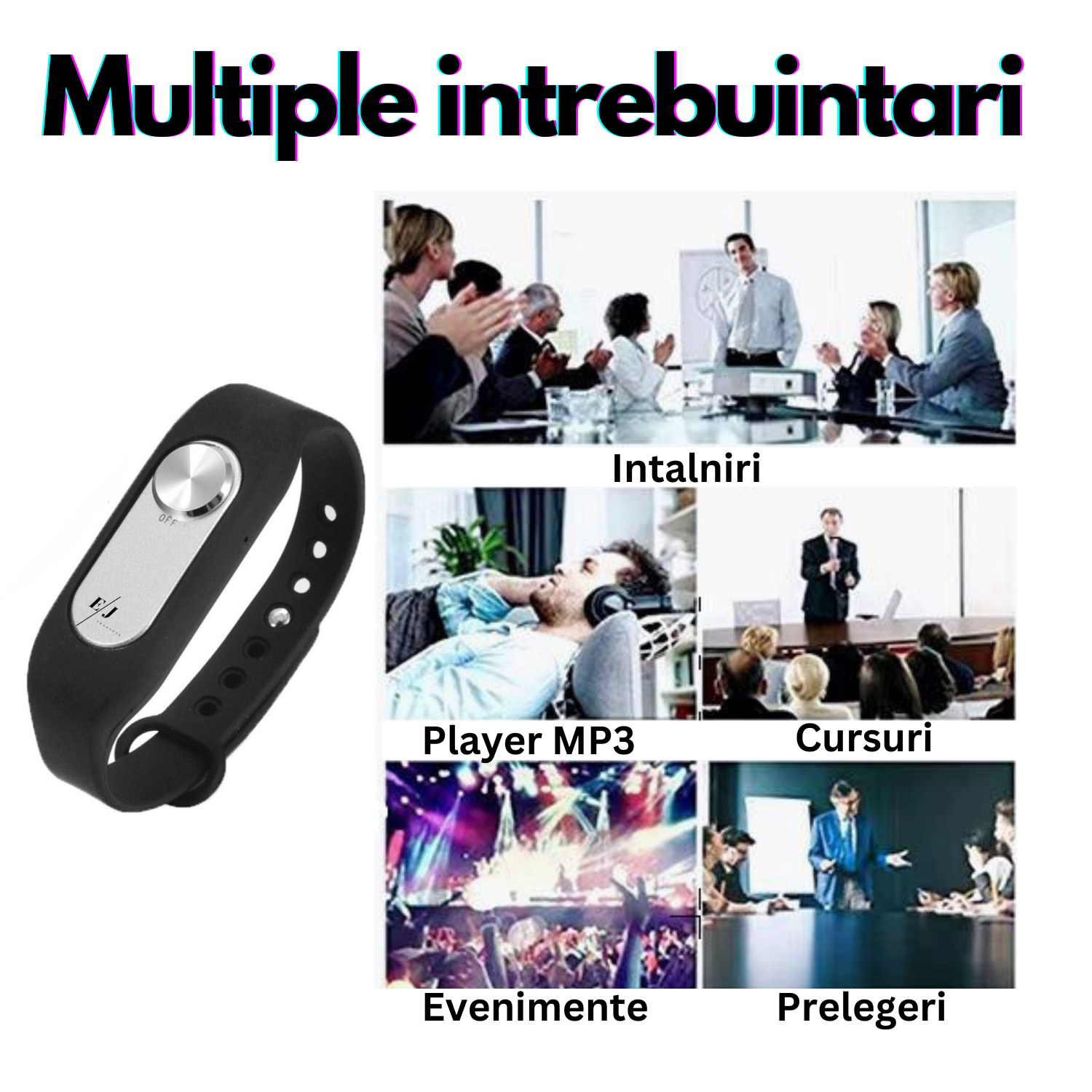 Bratara fitness cu microfon ascuns, MP3 Player, 16GB, neagra - WR06