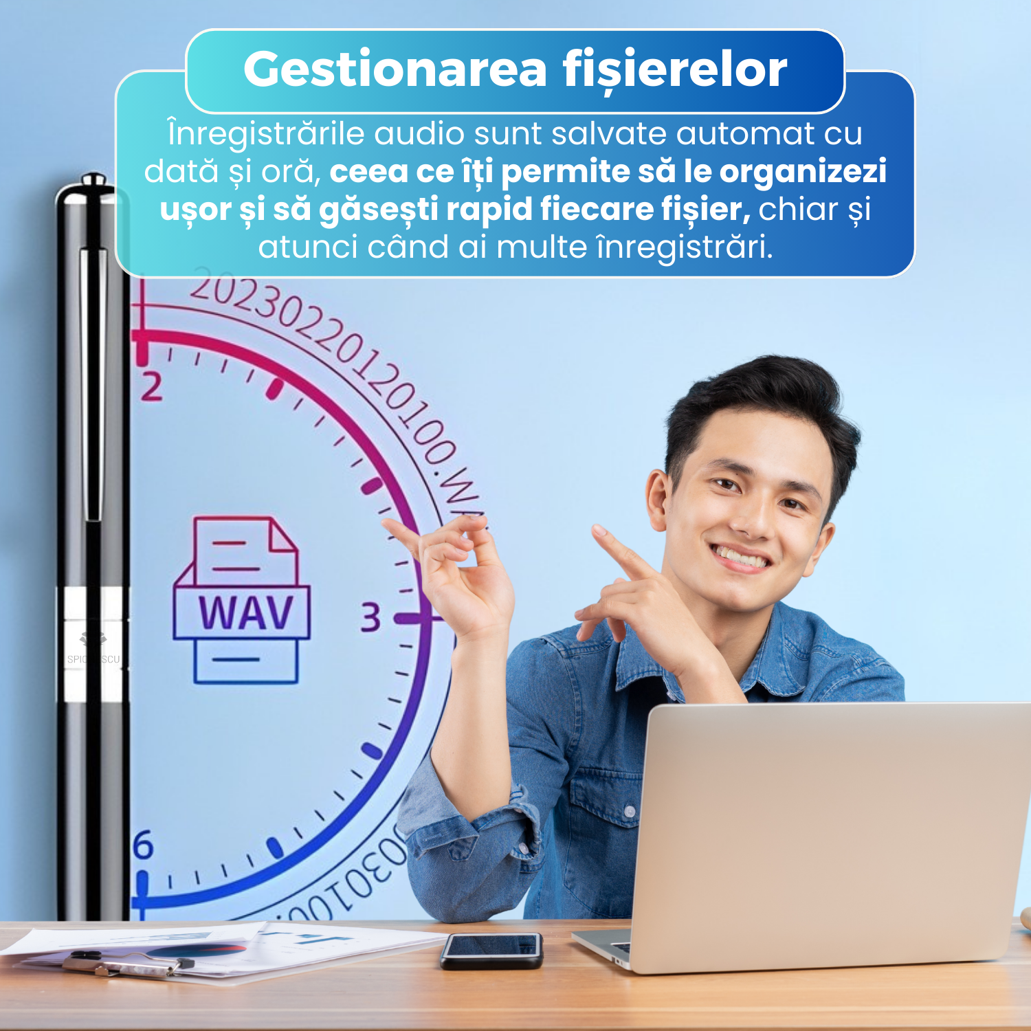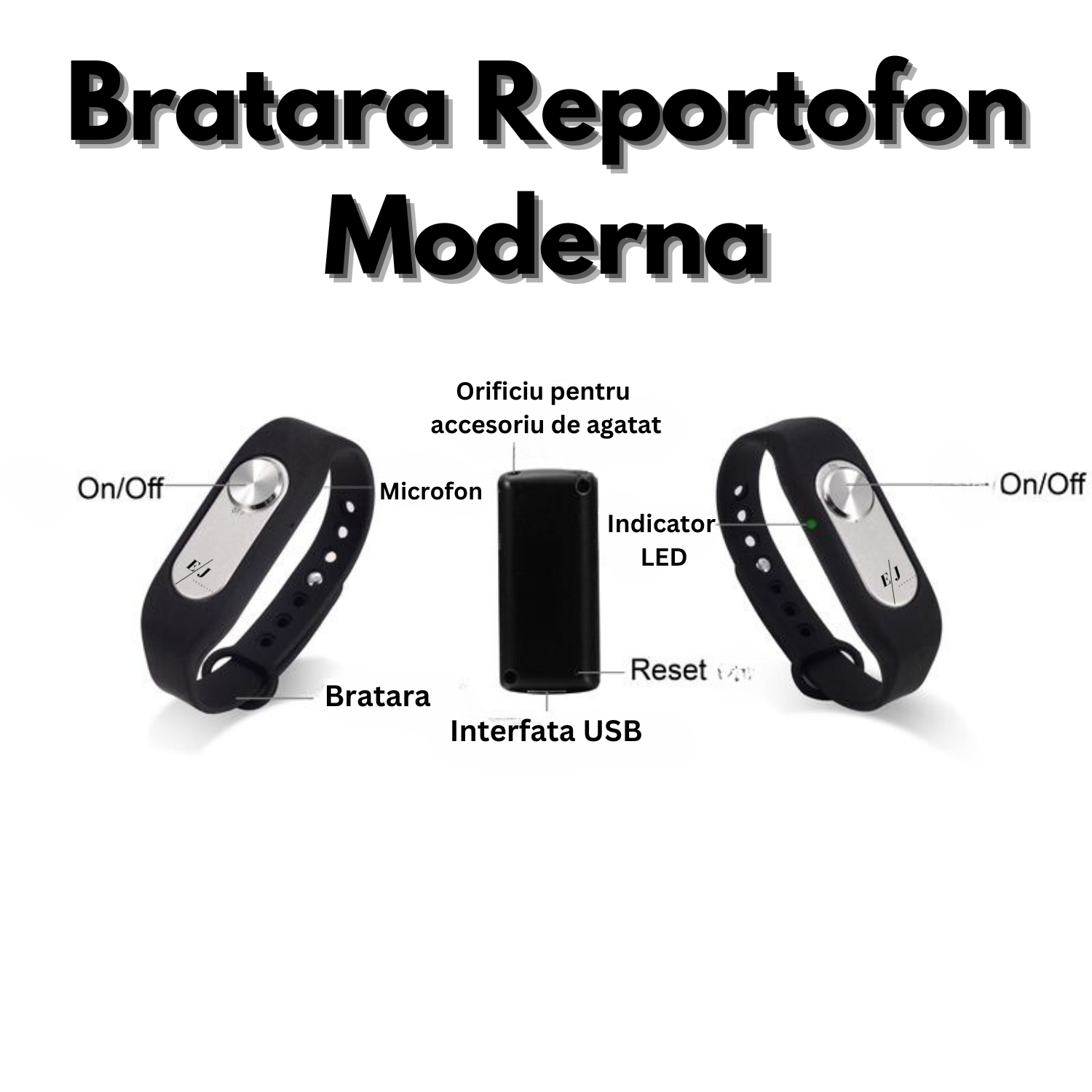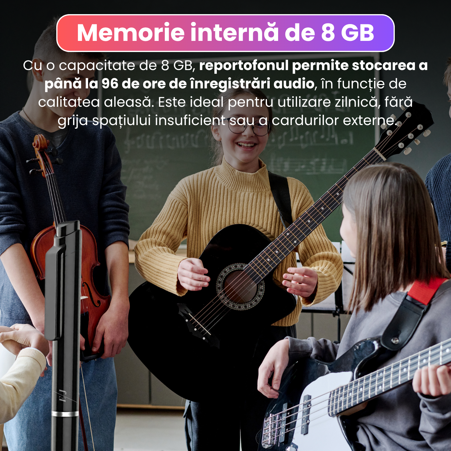 Mini reportofon spion 16 GB, raza actiune 60m, stocare 384 ore, activare vocala, functie MP3, reducere zgomot de fundal, autonomie 24h, design compact si portabil