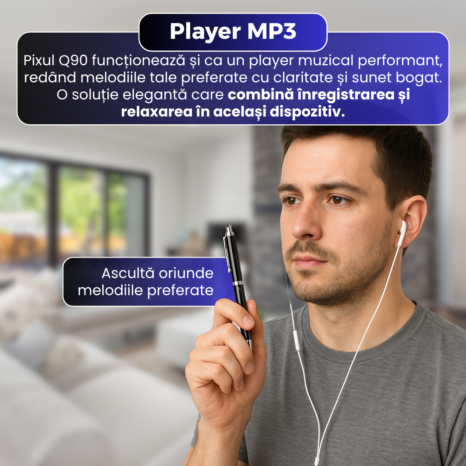 Pix cu microfon ascuns, autonomie mare, MP3 Player, negru - Q90