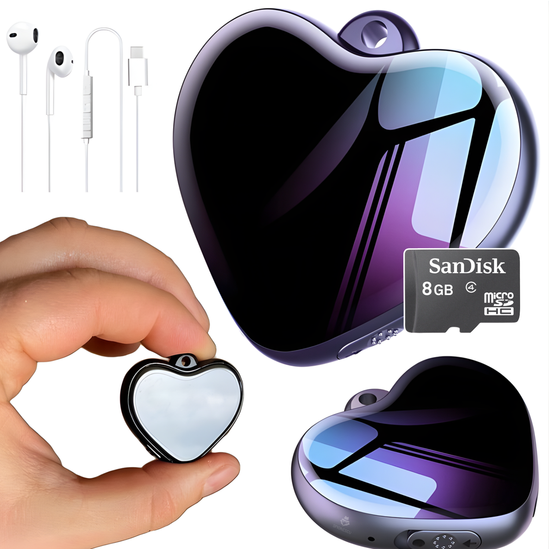 Mini reportofon spion tip pandantiv inimioara Q66, activare vocala, design fara butoane, inregistrare ADPCM 1536Kbps, autonomie 35h, player MP3, control prin cablu, negru-violet