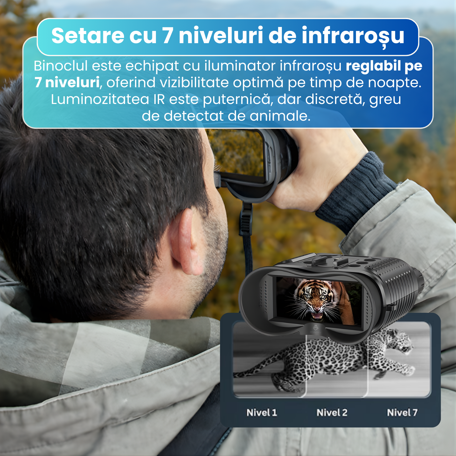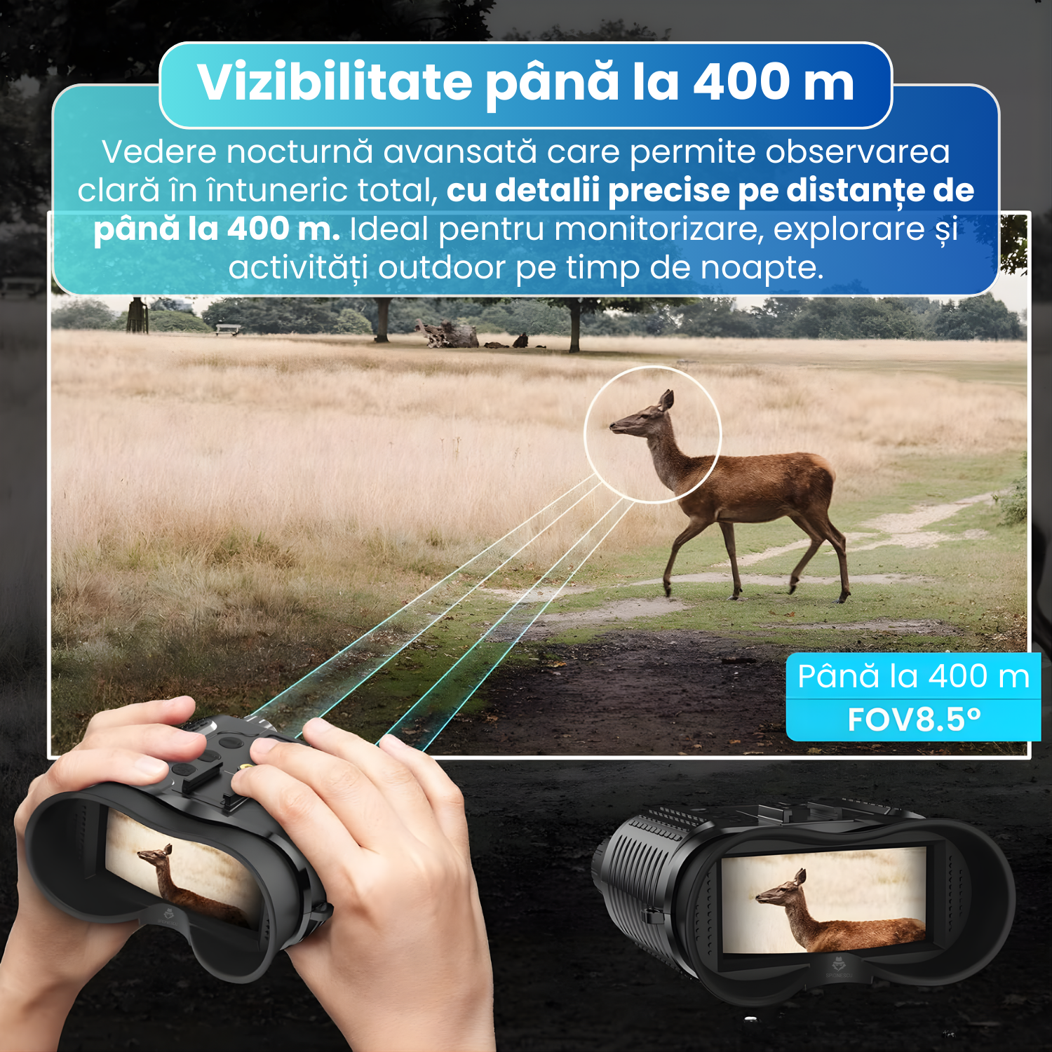 Daca iti doresti un binoclu de vedere nocturna performant, fiabil si usor de utilizat, acest model reprezinta alegerea potrivita. Combinatia dintre vizibilitatea mare, infrarosul reglabil, zoom-ul digital puternic si autonomia extinsa il transforma intr-un dispozitiv complet pentru activitati outdoor, vanatoare, monitorizare sau explorare pe timp de noapte. Conceput pentru utilizare practica si durabila, este pregatit sa faca fata oricarei provocari.