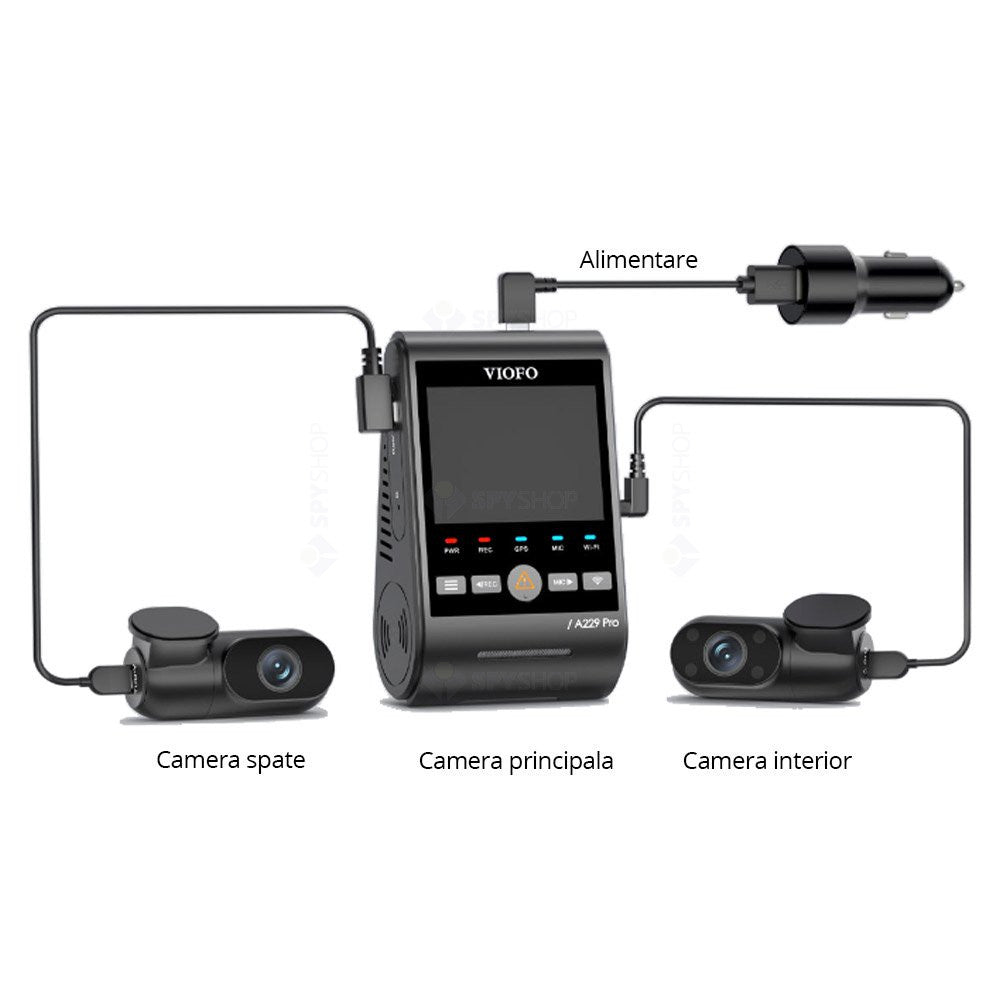 Camera auto tripla Viofo A229 PRO 3CH, 4K/2K/Full HD, WiFi, GPS Logger, microfon, slot card, super night vision 2.0