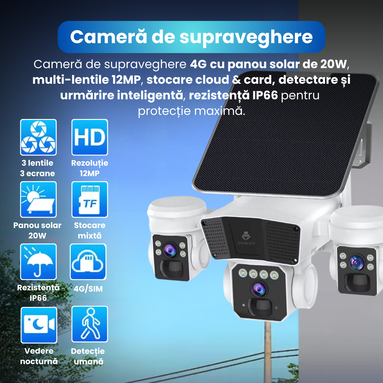 Camera de supraveghere, Q6, 12MP, panou solar integrat, conexiune 4G, slot SIM, viziune nocturna, detectie miscarare, audio bidirectional, rezistenta la apa IP66
