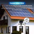 Echipata cu un panou solar de 20W, camera beneficiaza de alimentare constanta, fara a depinde de reteaua electrica. Aceasta solutie inteligenta elimina complet nevoia de cabluri si reduce costurile lunare cu energia. Functioneaza perfect chiar si in zone izolate, fiind ideala pentru monitorizare continua, 24/7, in orice anotimp. Indiferent de conditiile meteo, panoul capteaza suficienta energie pentru a mentine camera activa si conectata.
