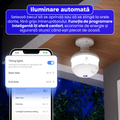 Montajul este extrem de simplu: se insurubeaza direct in fasungul standard E27, la fel ca un bec obisnuit. Nu necesita cabluri suplimentare, gauri sau suruburi – totul se realizeaza in cateva secunde. Aceasta solutie plug-and-play permite oricui sa instaleze dispozitivul rapid si eficient, fara ajutor profesional.