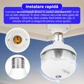 Camera de supraveghere tip bec, D8, WiFi, 360°, rezolutie 3MP, viziune nocturna color, audio bidirectional, alarma sonora si luminoasa, detectie miscare, instalare E27 fara cabluri, control prin aplicatie