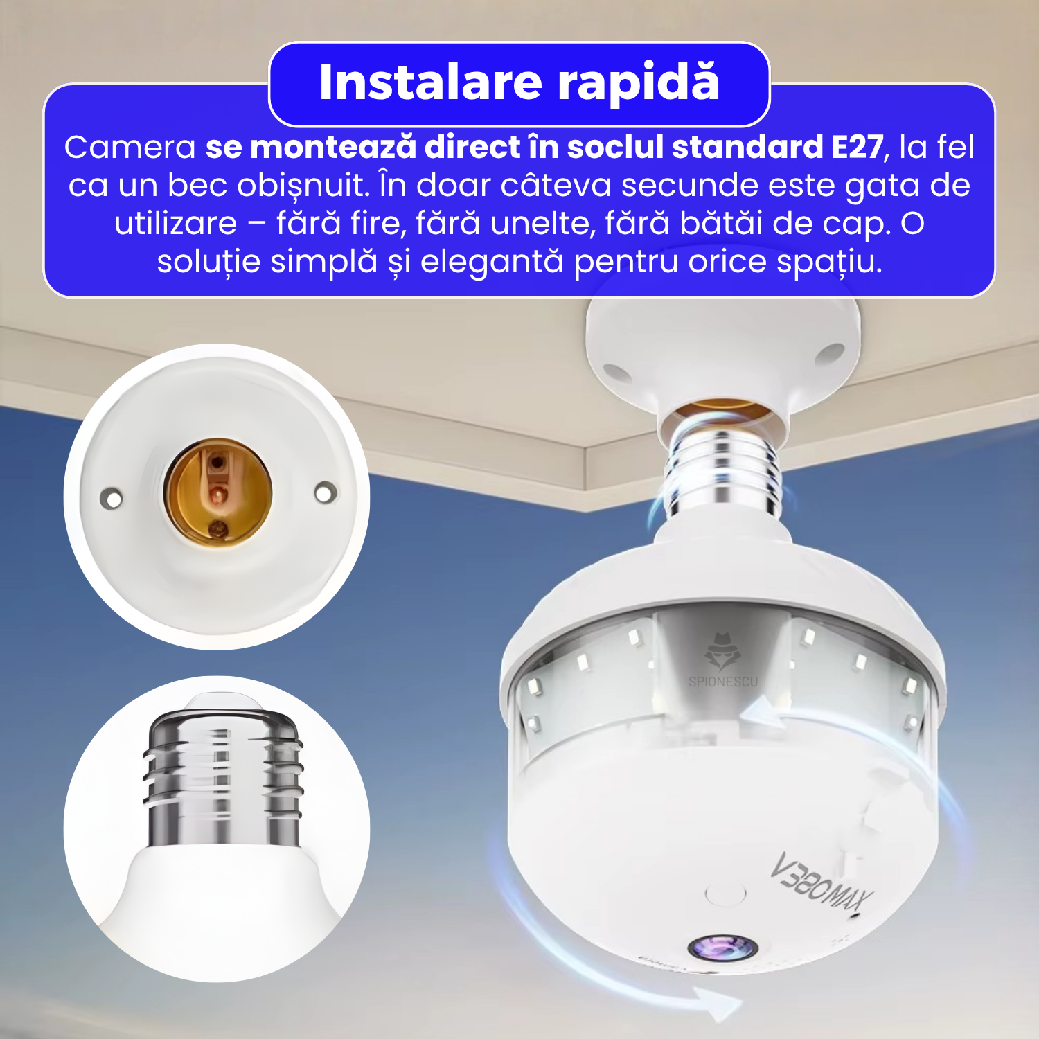 Instalare rapida in soclu E27 – fara cabluri sau unelte