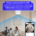 Camera ofera o vedere panoramica reala la 360°, asigurand monitorizarea intregului spatiu cu o singura lentila inteligenta. Fie ca este montata pe tavan sau pe perete, surprinde fiecare colt al incaperii fara zone oarbe. Aceasta solutie elimina necesitatea mai multor camere traditionale si reduce costurile, oferind in acelasi timp o experienta vizuala fluida si continua. Perfecta pentru supravegherea locuintei, biroului sau garajului, camera garanteaza o acoperire completa, atat in interior, cat si in exterior.