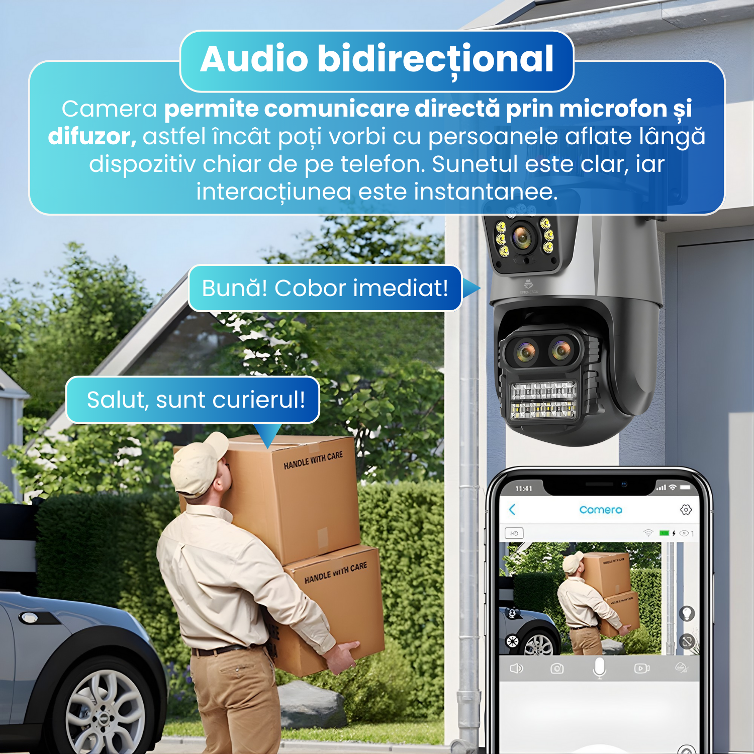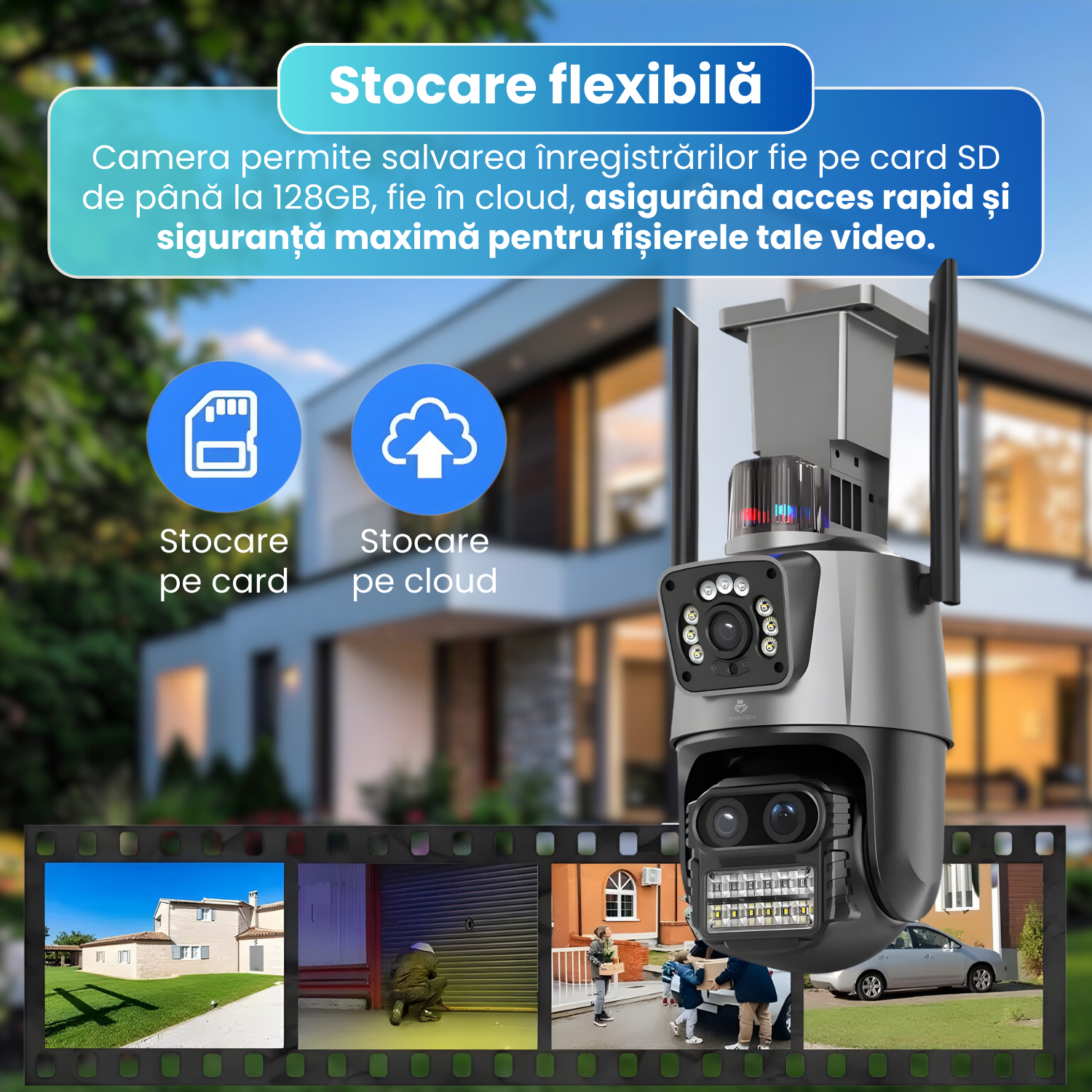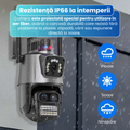Aceasta camera tripla 4K ofera o combinatie excelenta intre acoperire completa, claritate superioara, vizibilitate nocturna avansata si conectivitate flexibila. Este alegerea potrivita pentru oricine are nevoie de un sistem de supraveghere modern, stabil si usor de utilizat. Indiferent de sezon sau locatie, camera ofera siguranta, control si monitorizare continua pentru locuinta sau afacerea ta.