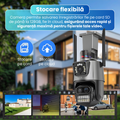 Camera de supraveghere tripla 4K, WiFi, 9MP, PTZ 355°, zoom digital 8X, viziune nocturna color + IR, detectie miscarare, IP66, conectivitate bluetooth si RJ45, CCTV, comunicare bidirectionala
