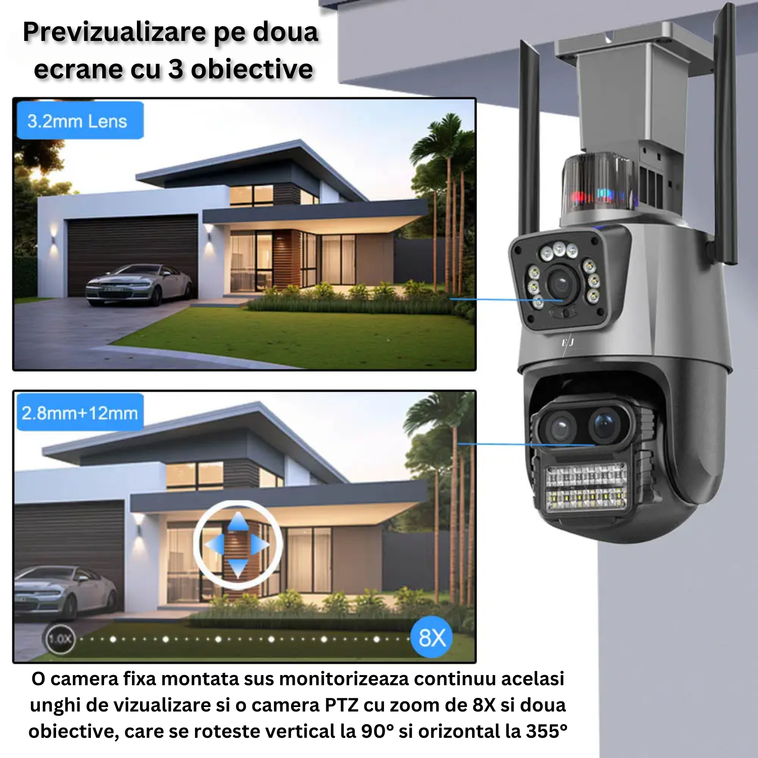 Unghiuri de Vizualizare Extinse: Urmare orice miscare intr-un spectaculos unghi orizontal de 355 de grade si un unghi vertical de 90 de grade, asigurand o acoperire completa a zonei dumneavoastra exterioare.