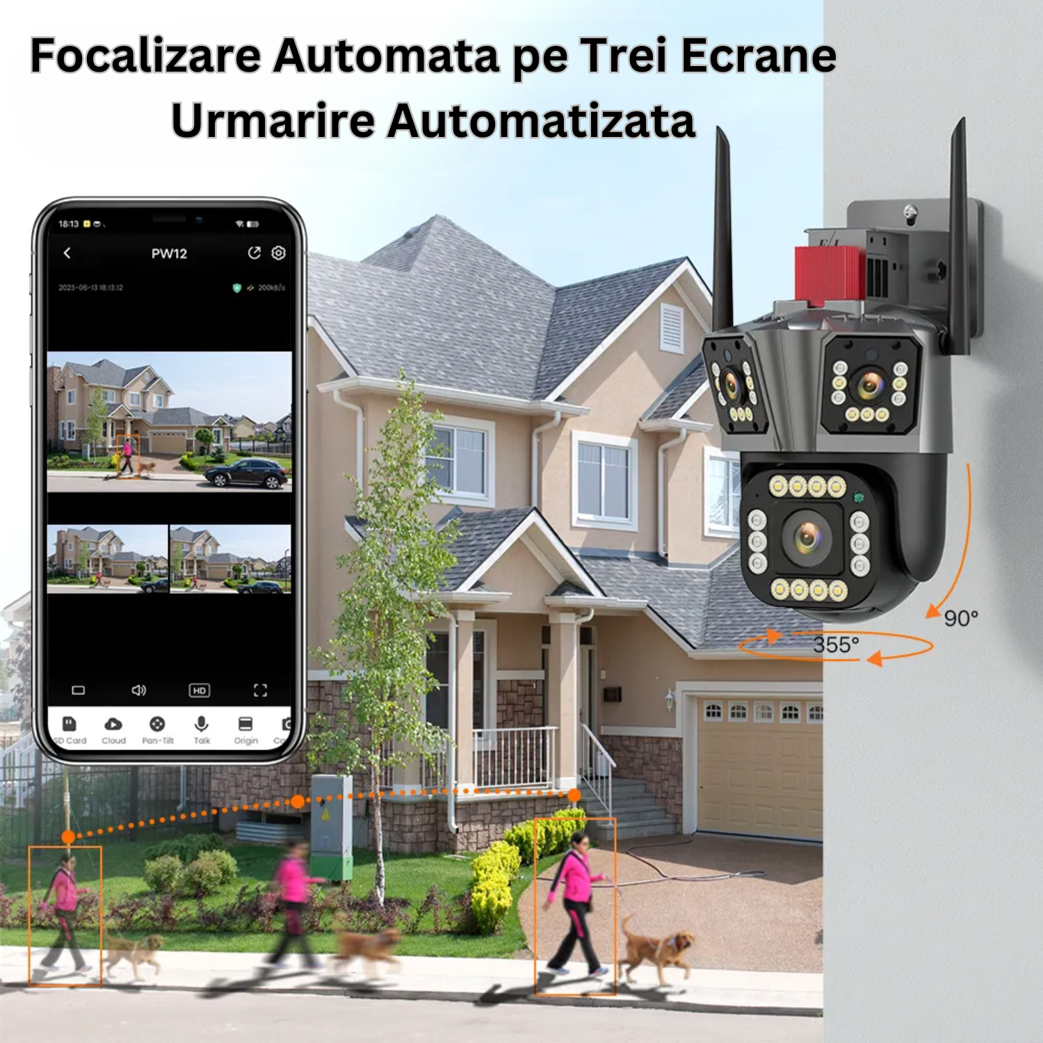 Experimentati securitatea la nivelul urmator cu Camera de Supraveghere Wireless WIFI 5K 12MP cu Trei Obiective! Va prezentam un dispozitiv de supraveghere avansat, care va va oferi pacea sufleteasca si controlul absolut asupra locuintei dvs. Aceasta camera de supraveghere impresionanta nu este doar un dispozitiv, ci o investitie in siguranta dvs. si a familiei dvs. Hai sa exploram in profunzime toate caracteristicile si utilitatile care fac din camera 5K este alegerea perfecta pentru securitatea dvs.: